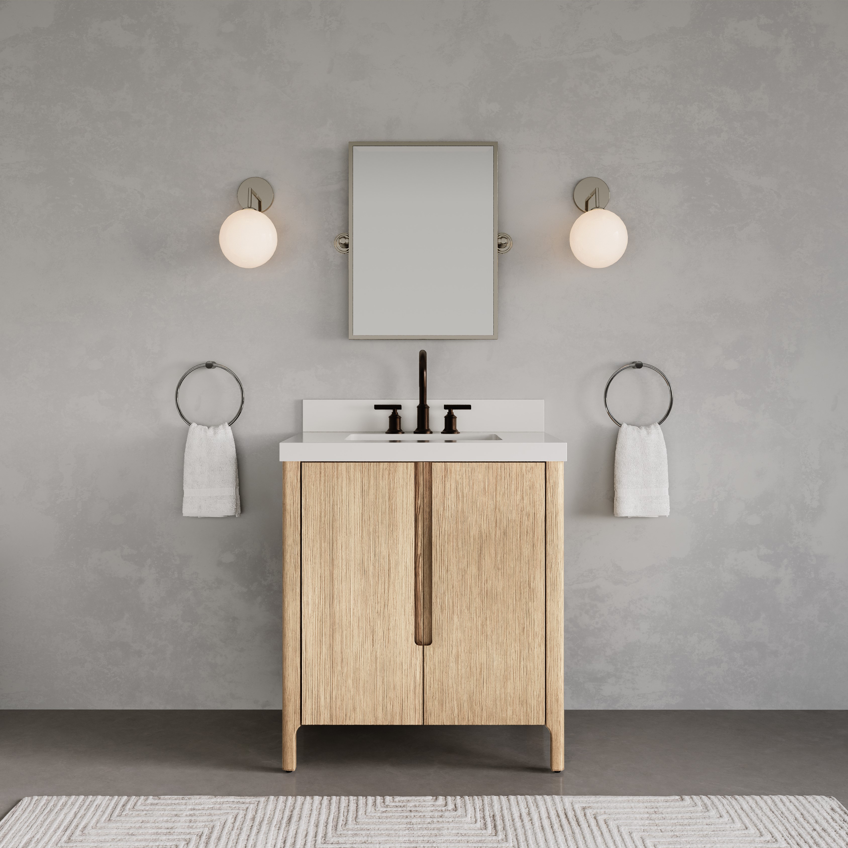 30 in. Single Sink Bath Vanity in Casa Latte with White Quartz Top with Linen Cabinet and Medicine Cabinet Options