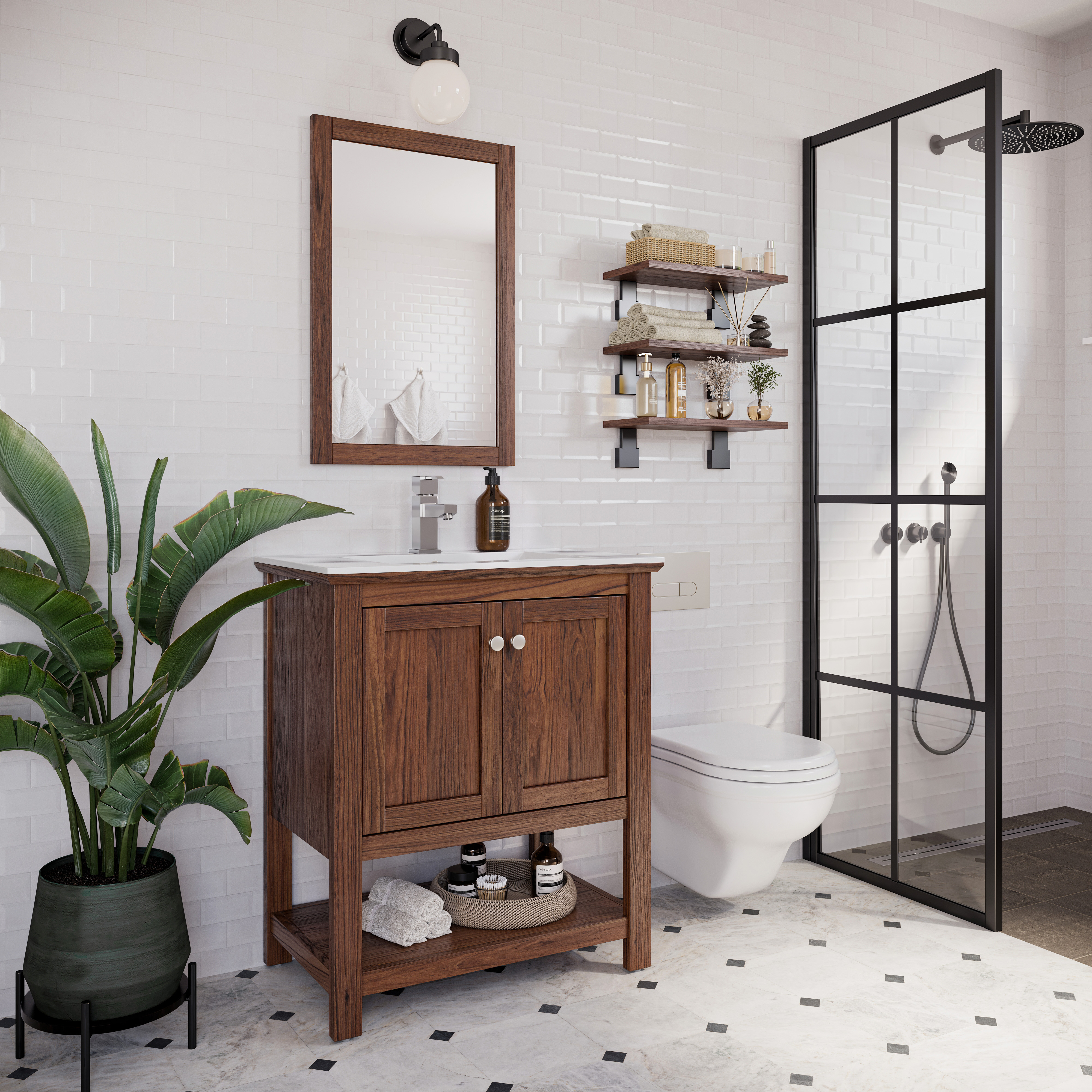 30" Warm Walnut Traditional Bathroom Cabinet with Top & Sink