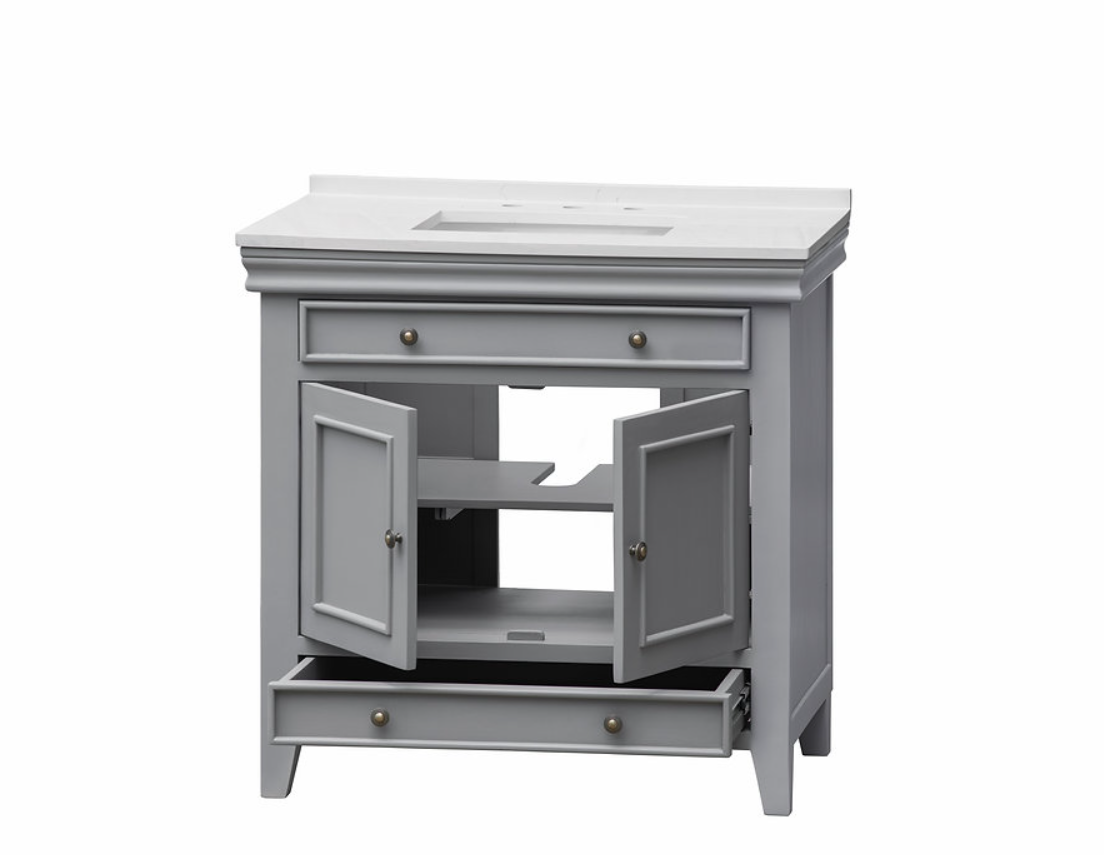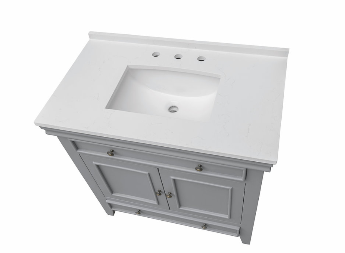 36" Single Sink White with Grey Veining in Gray Paint Finish