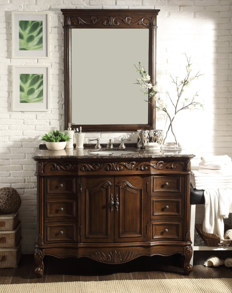 42 inch Adelina Classic Old Look Bathroom Vanity Baltic Brown Granite Top