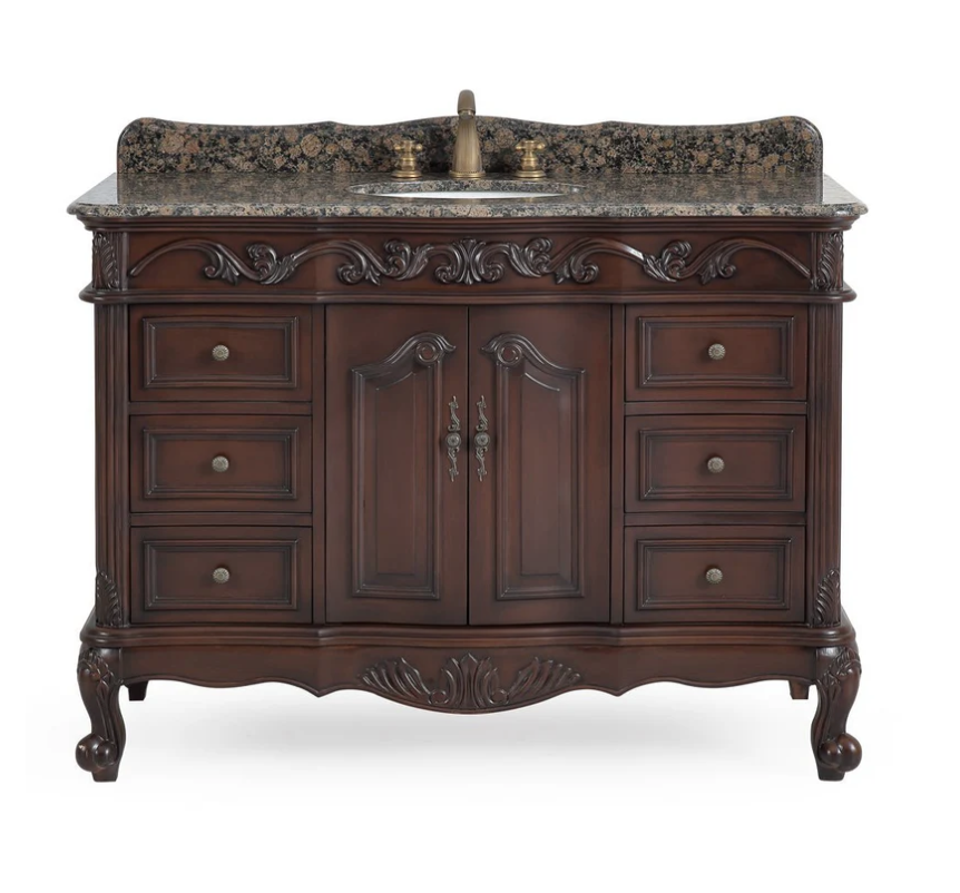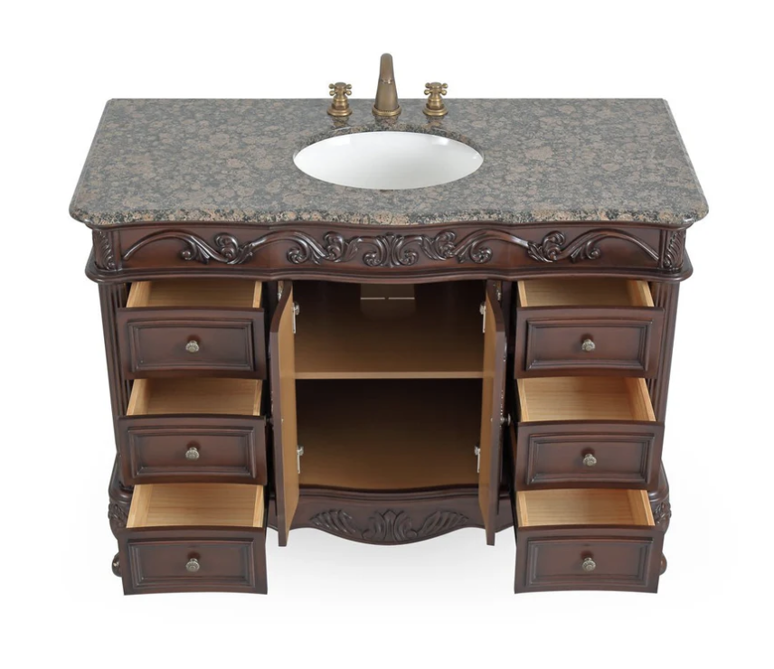 42 inch Adelina Classic Old Look Bathroom Vanity Baltic Brown Granite Top