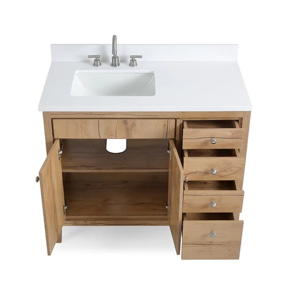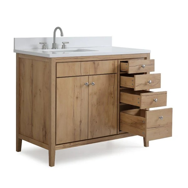 42 inch Modern Style Bathroom Sink Vanity in Wood Finish with Backsplash Option