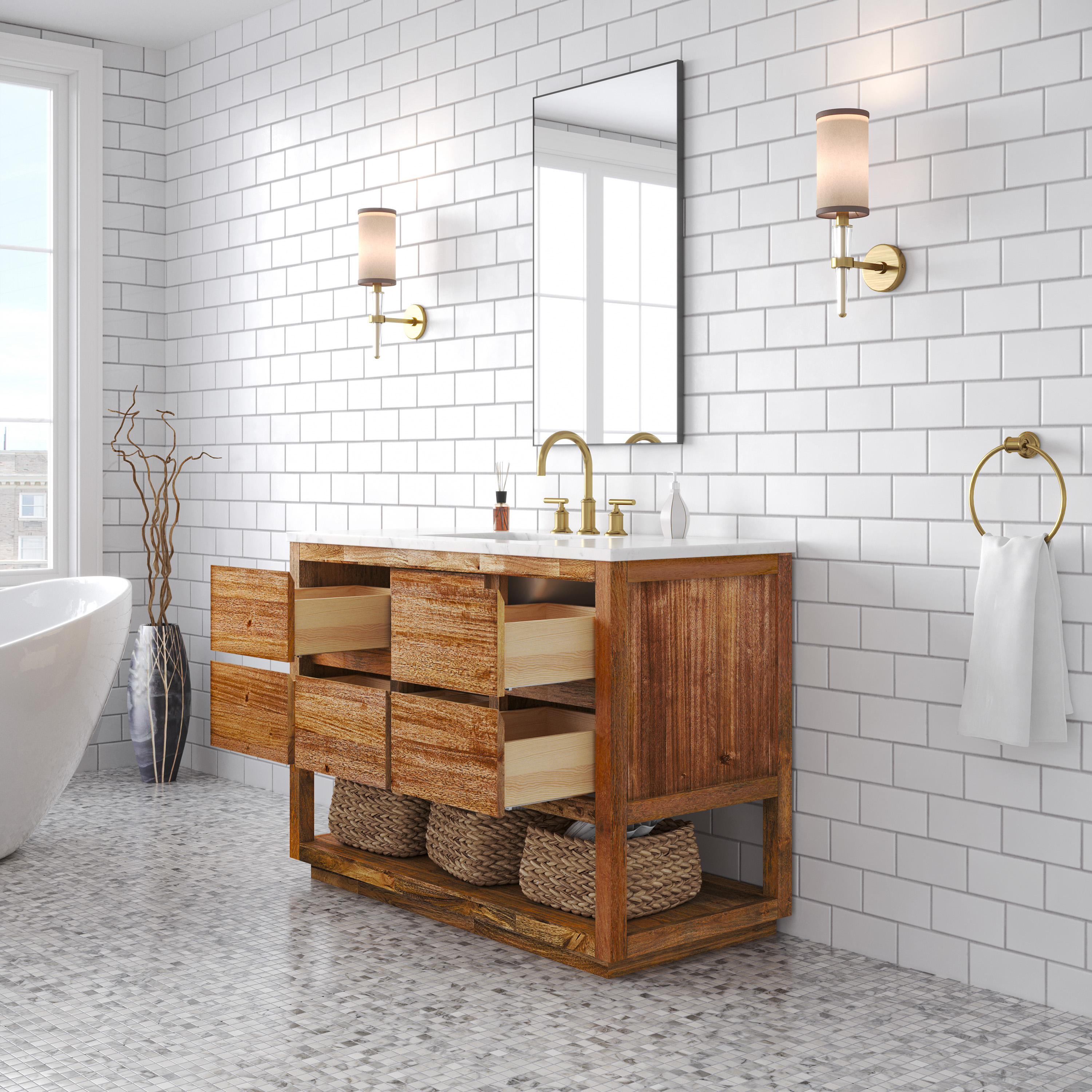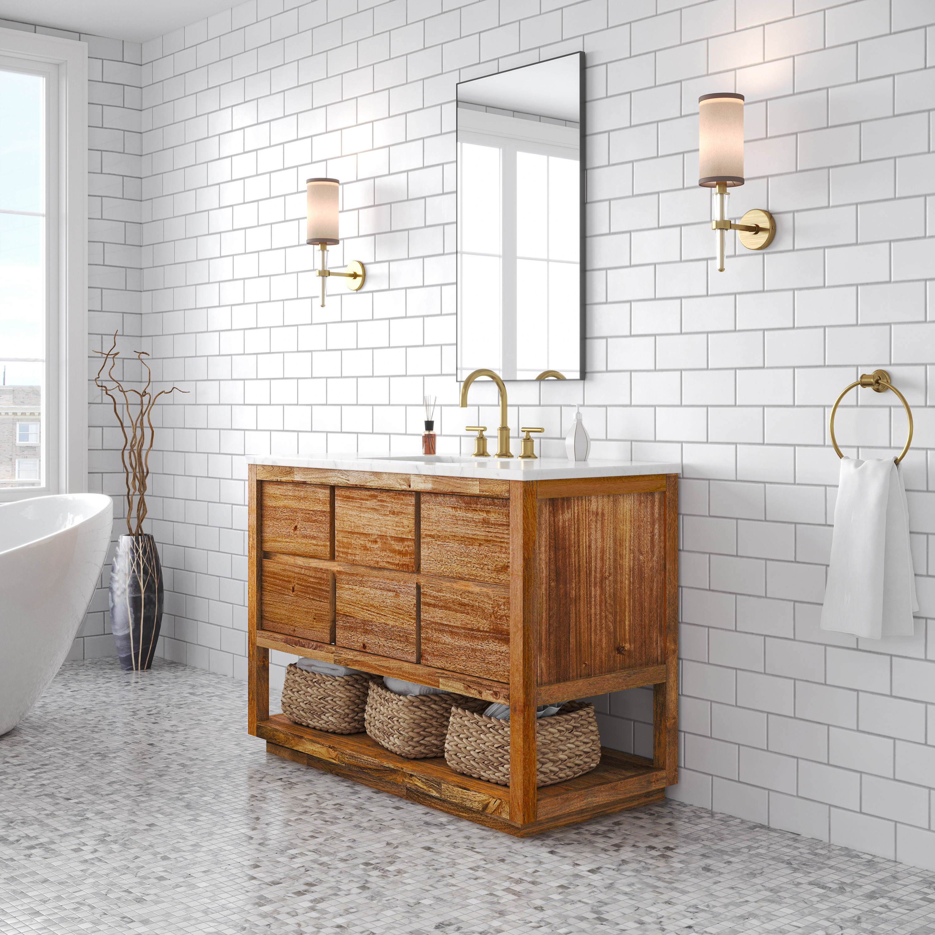 48 in. Single Sink Bath Vanity in Mango Wood with Carrara White Marble Top