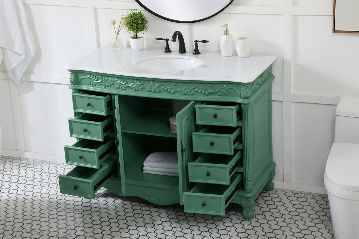 48 inch Single Bathroom Vanity in Vintage Mint with Ivory White Marble