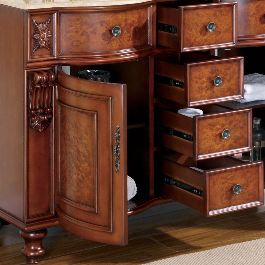 55" Double Sink Cabinet Antique - Crema Marfil Top, Undermount Ivory Ceramic Sinks