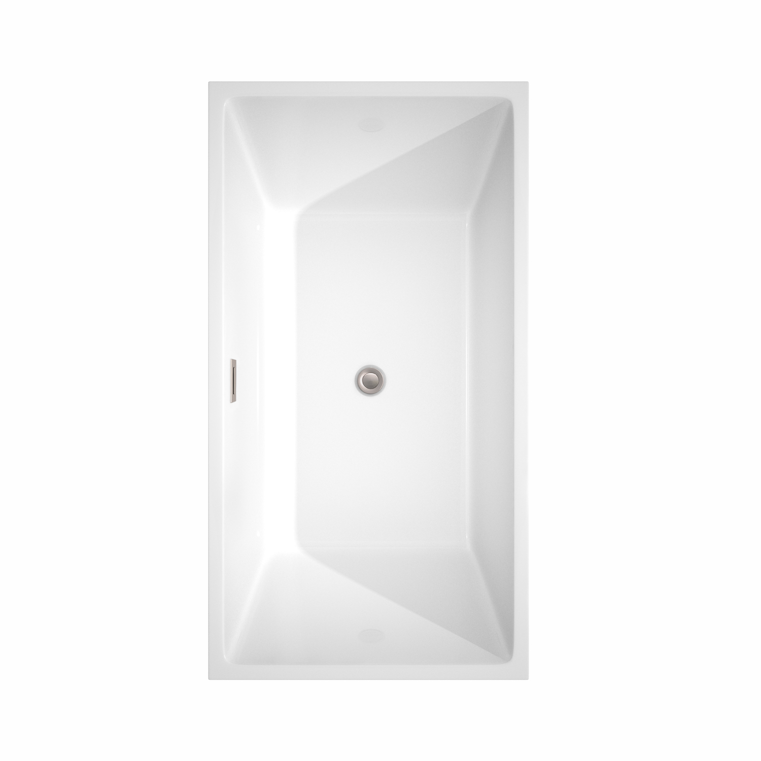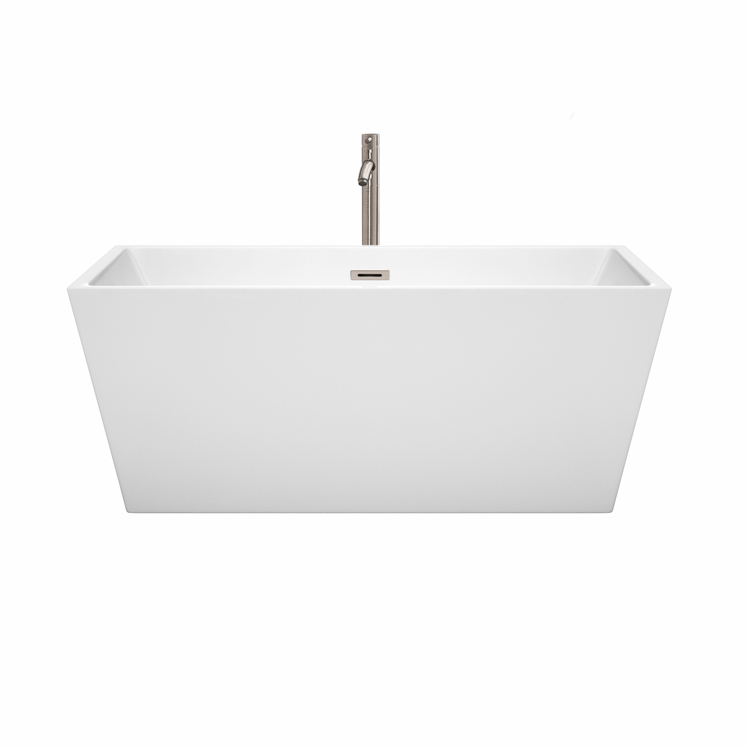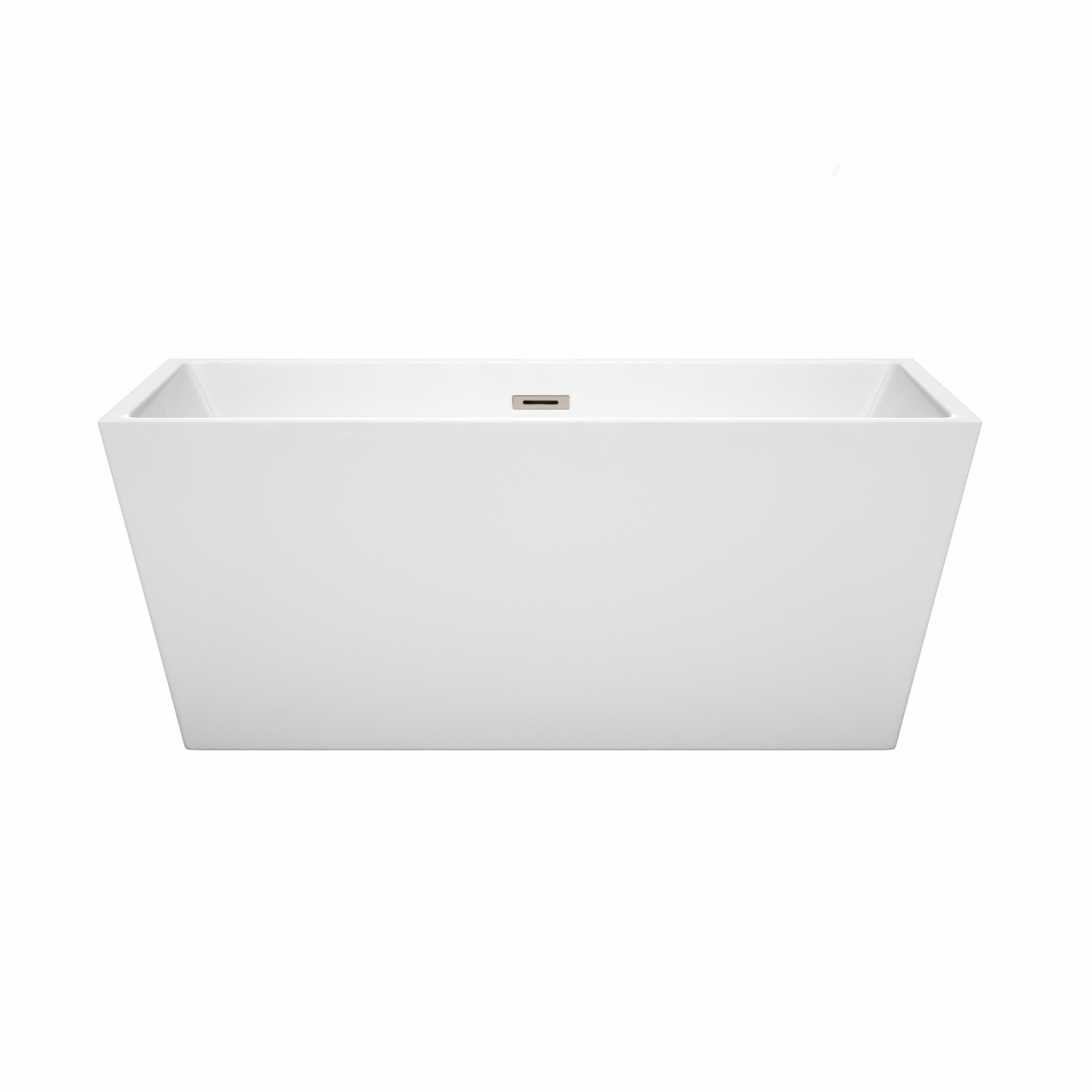 59" Freestanding Bathtub in White with Brushed Nickel Drain and Overflow Trim w/ Faucet Options