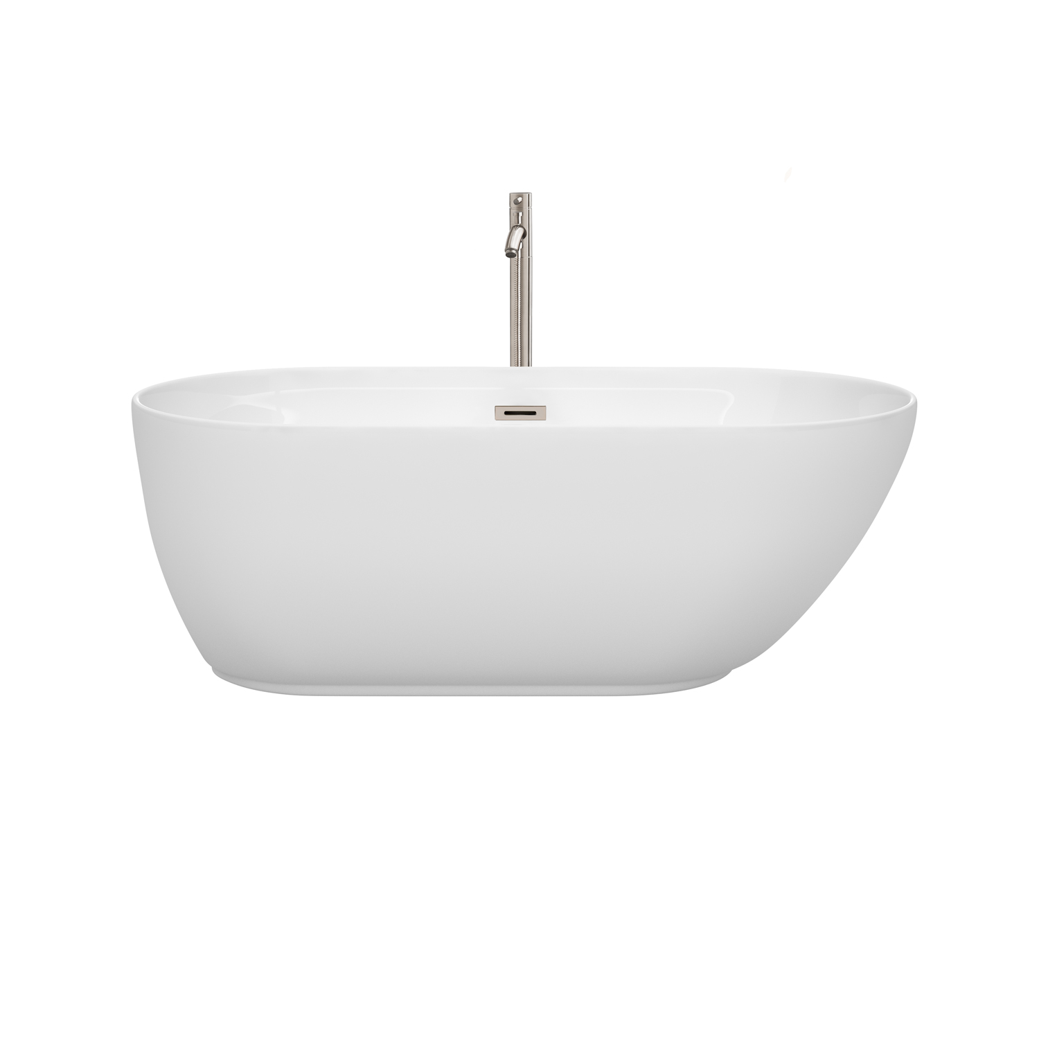 60" Freestanding Bathtub in White with Polished Chrome Drain and Overflow Trim