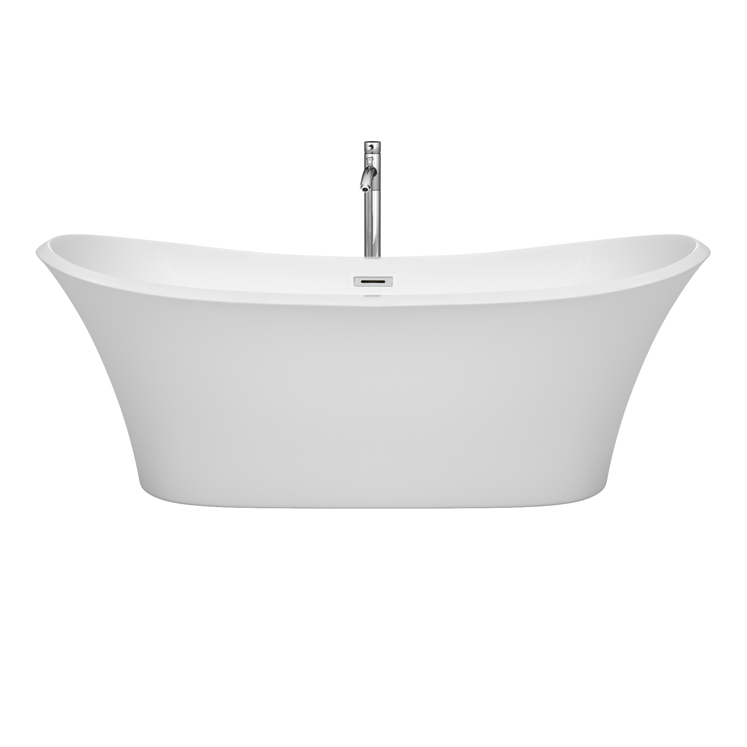 71" Freestanding Bathtub in White with Polished Chrome Drain and Overflow Trim