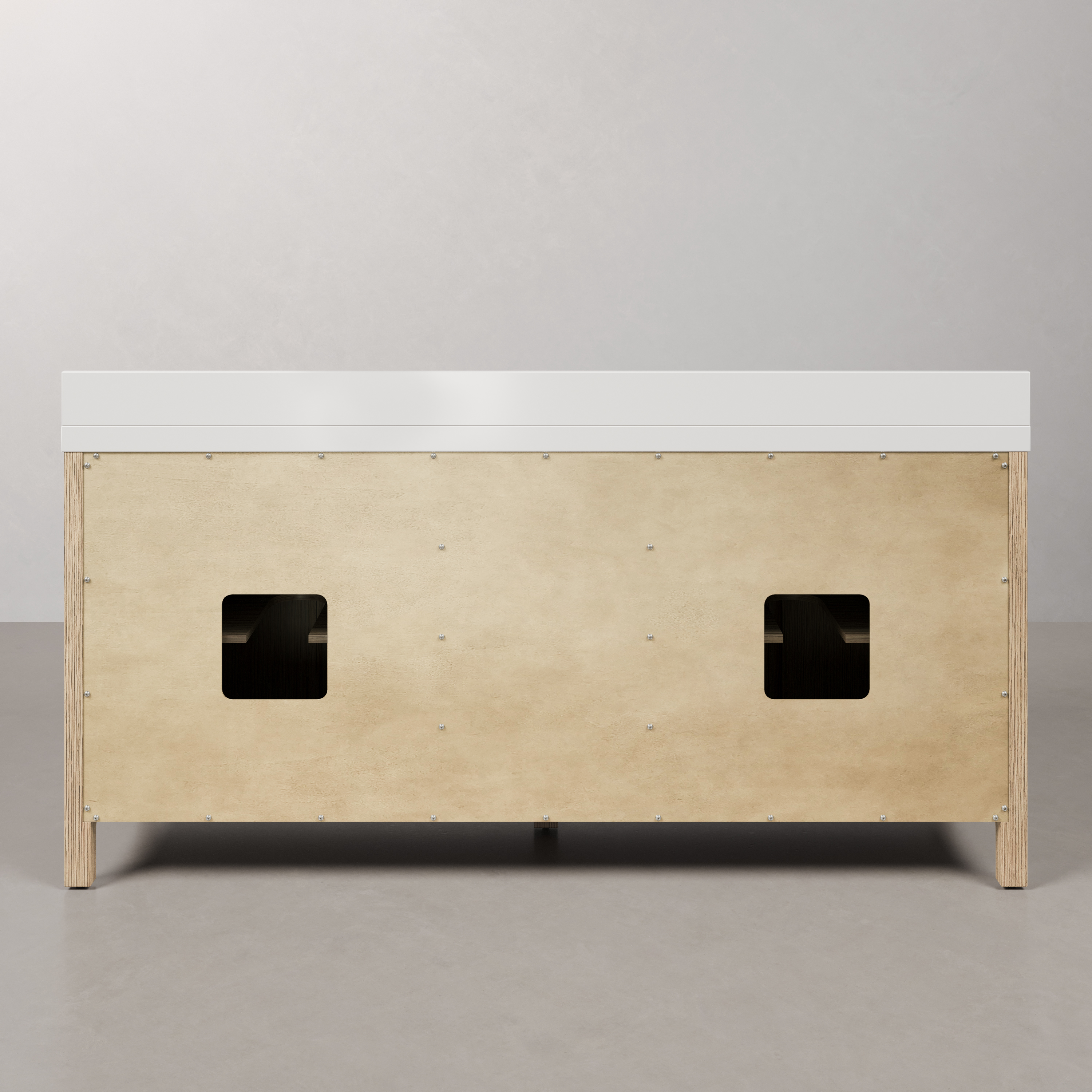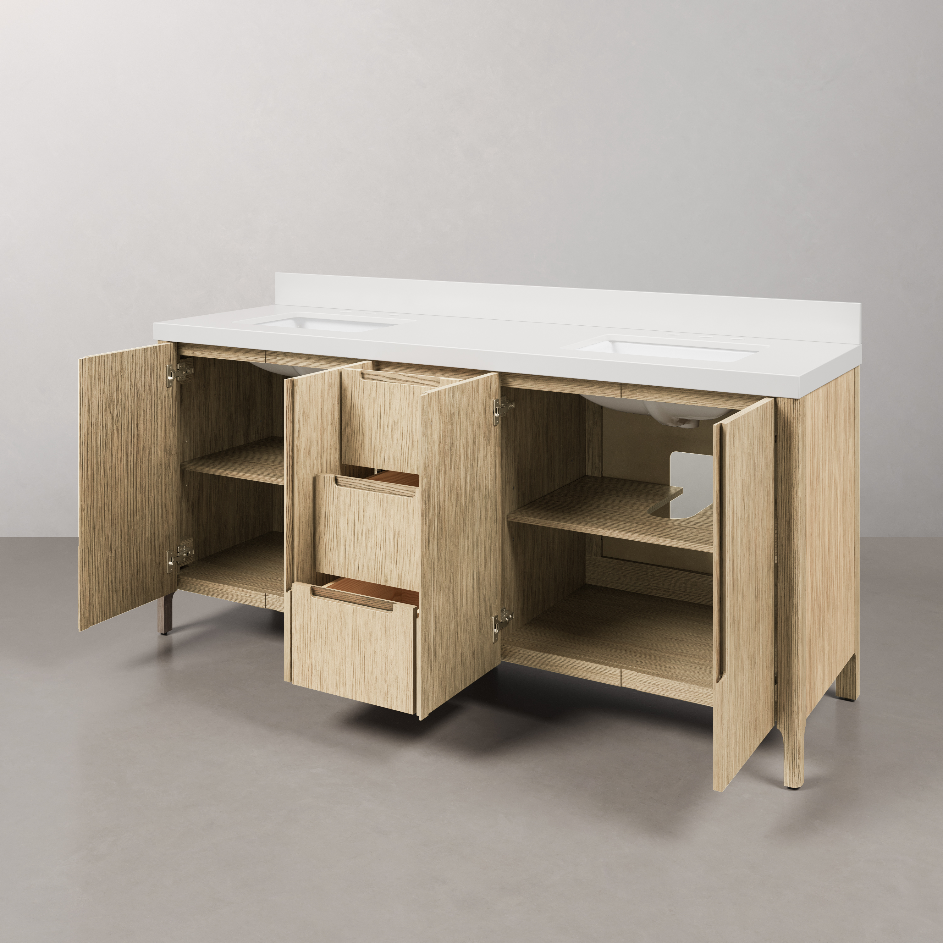 72 In. Double Sink Bath Vanity in Casa Latte with White Quartz Top with Linen Cabinet and Medicine Cabinet Options