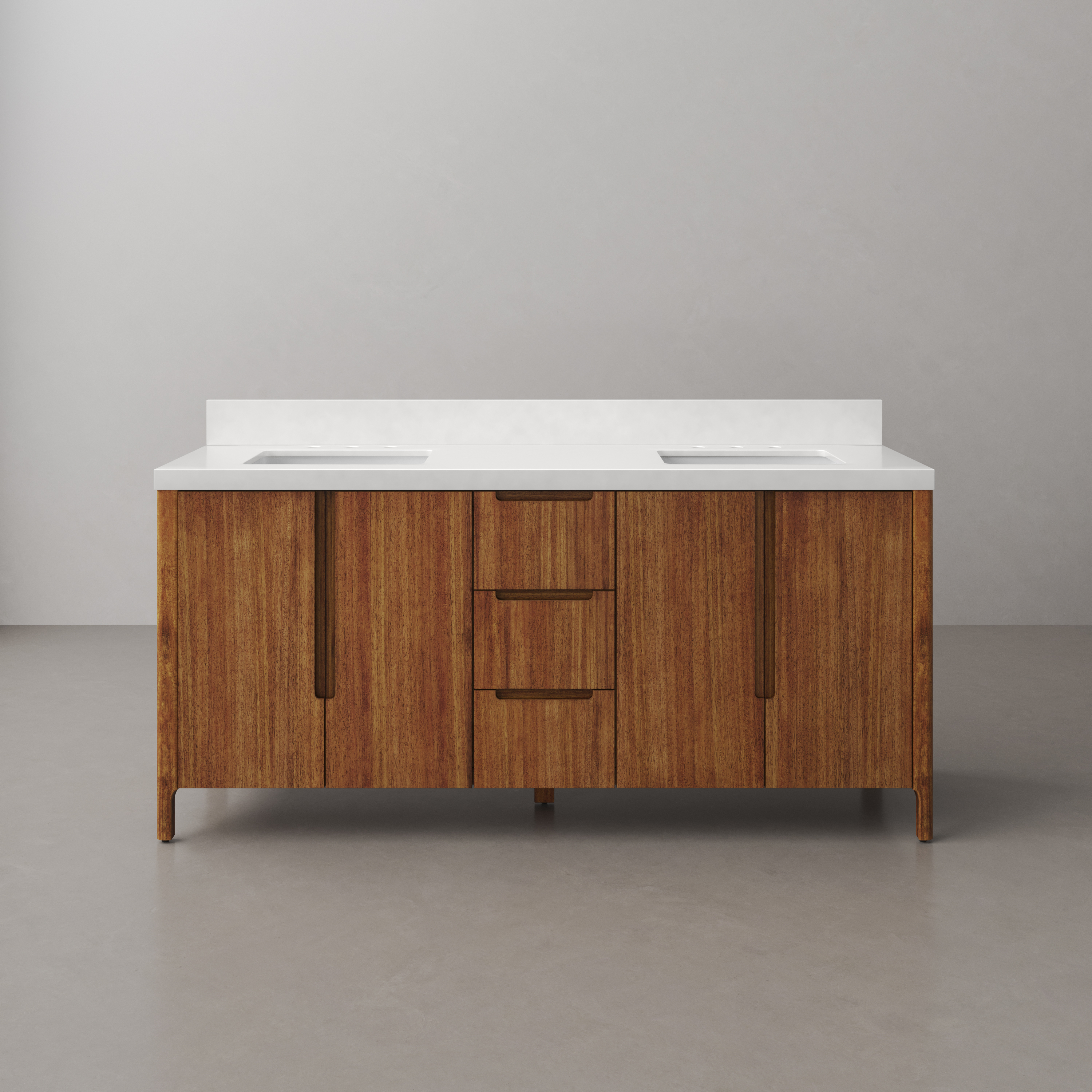 72 In. Double Sink Bath Vanity in Mango Wood with White Quartz Top, Linen Cabinet and Medicine Cabinet Options