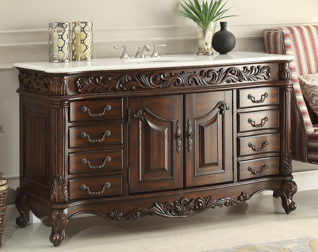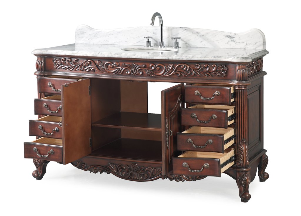 Adelina 60" Solid Wood Construction Martinique Bathrom Sink Vanity Cabinet