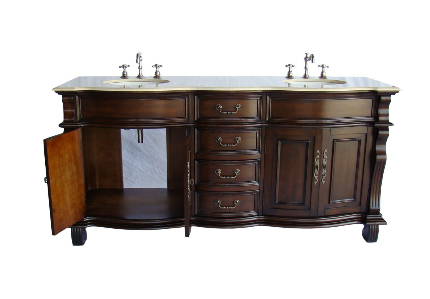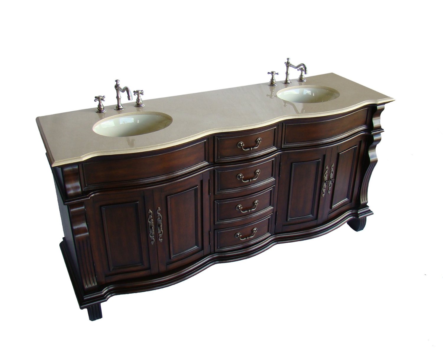 Adelina 72 inch Antique Double Bathroom Vanity Cream Marble Top