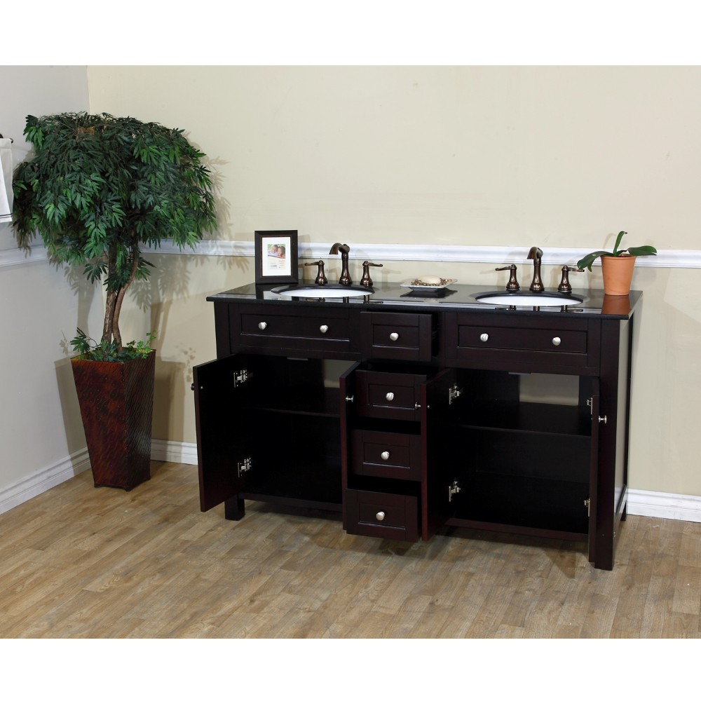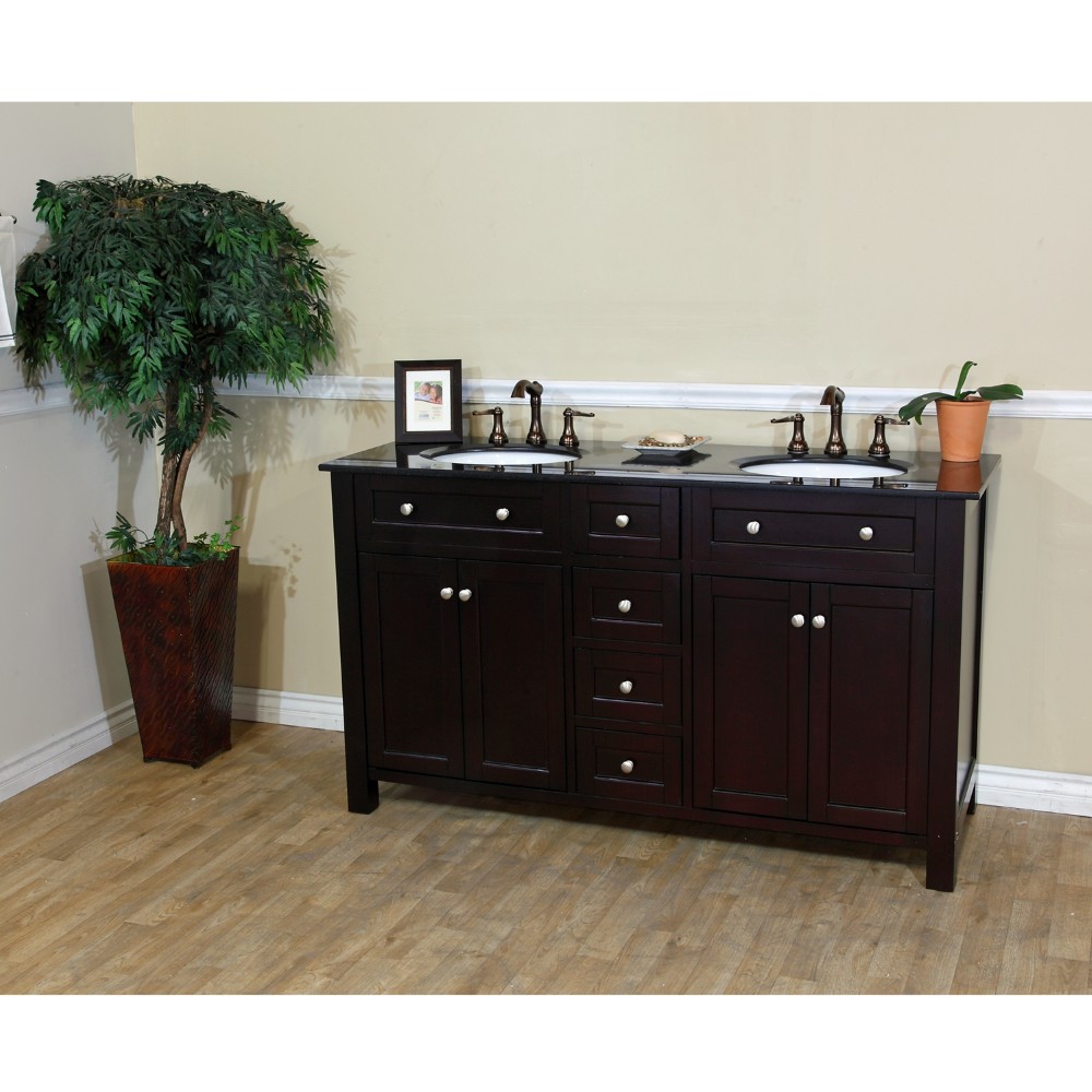 Bella 62 inch Double Sink Bathroom Vanity Black Granite Top
