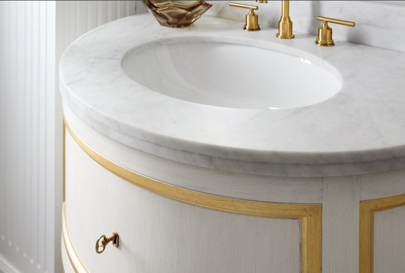 Covington Half Round 36" Antique White Vanity with White Carrara Marble and Solid Brass Hardware
