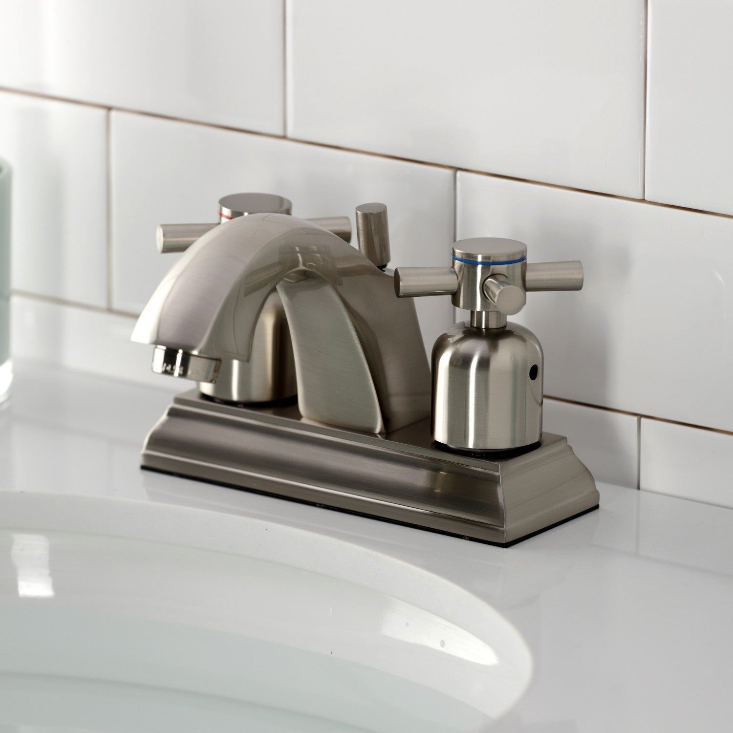 Double-Handle 4" Centerset Bathroom Faucet Brushed Nickel with 2 Finish Options