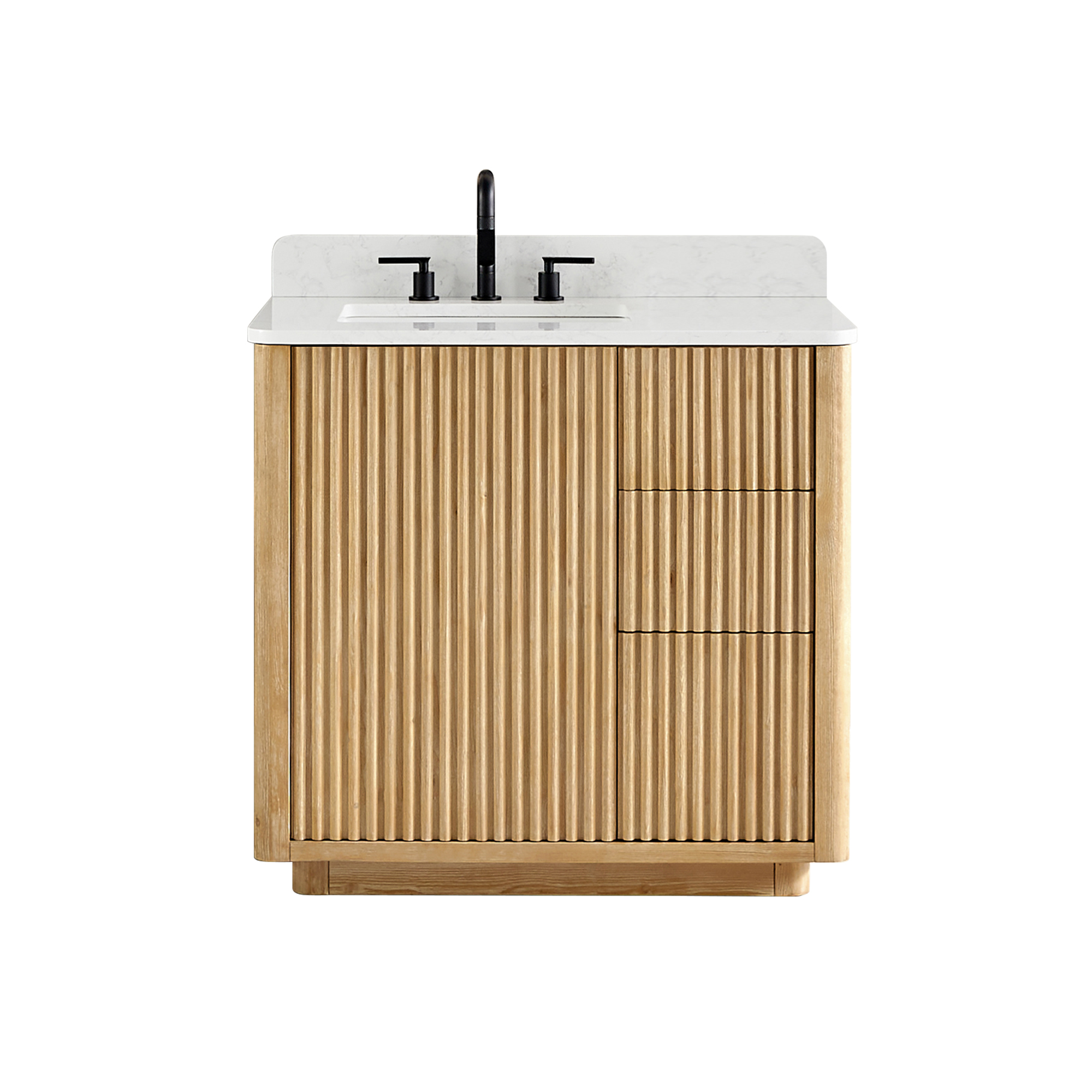 Issac Edwards 36" Single Bathroom Vanity in Washed Light Brown with Grain White Stone Countertop and Mirror Option
