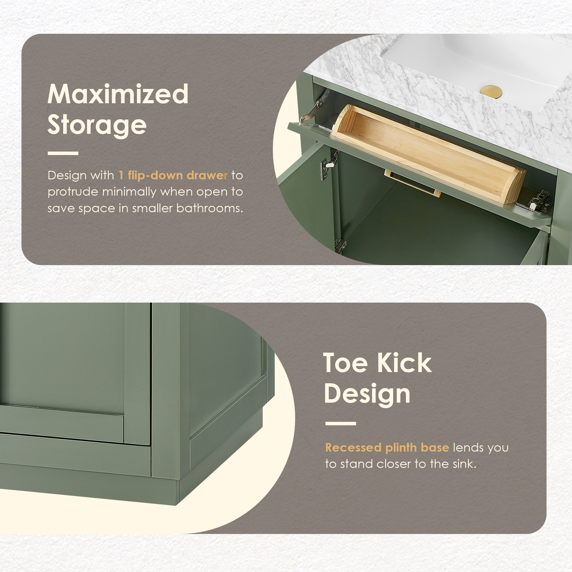 Design with 1 flip-down drawer to protrude minimally when open to save space in smaller bathrooms.