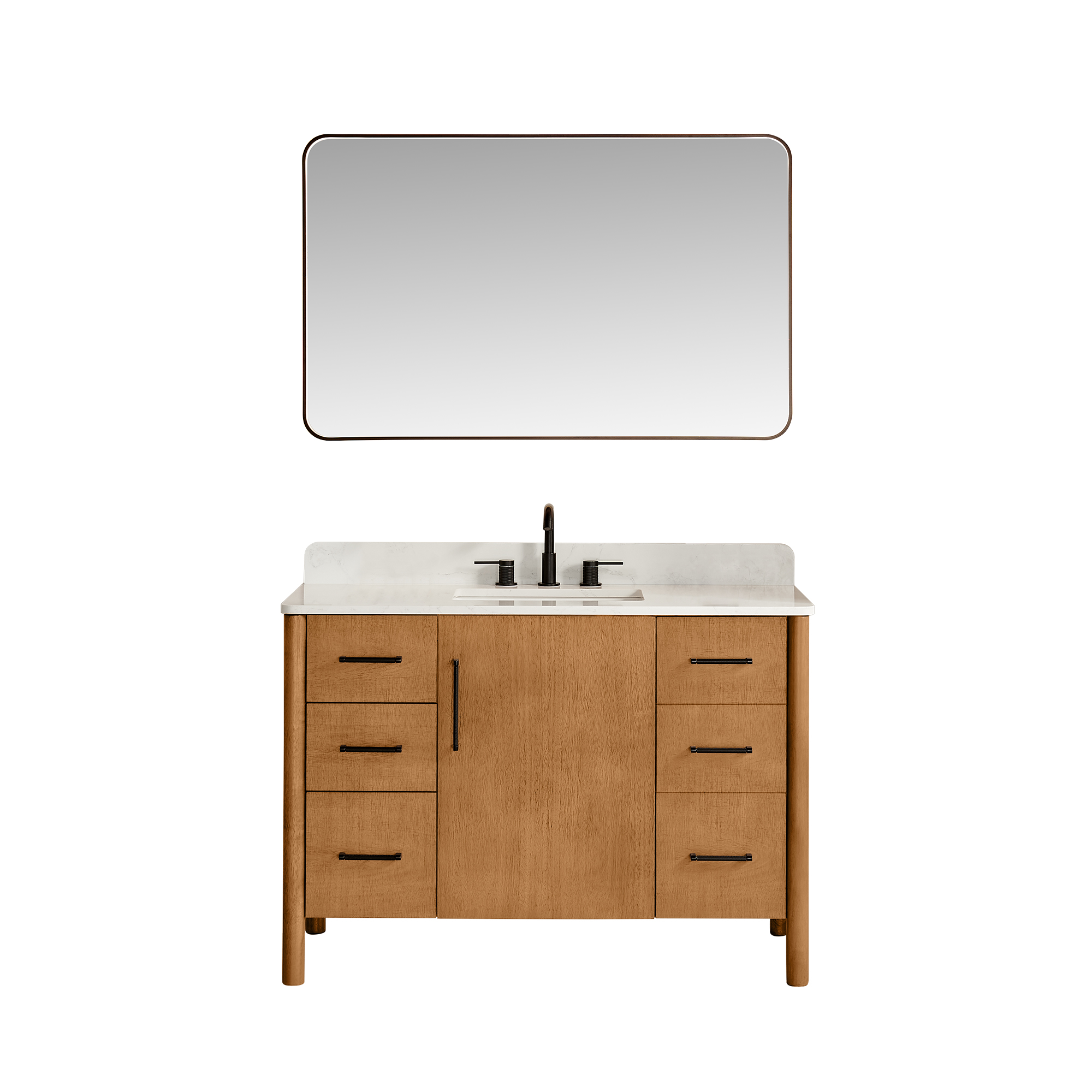 Rounded vanity legs: Smooth, rounded cabinet legs ensure stability and durability while adding a subtle touch of classic elegance.
