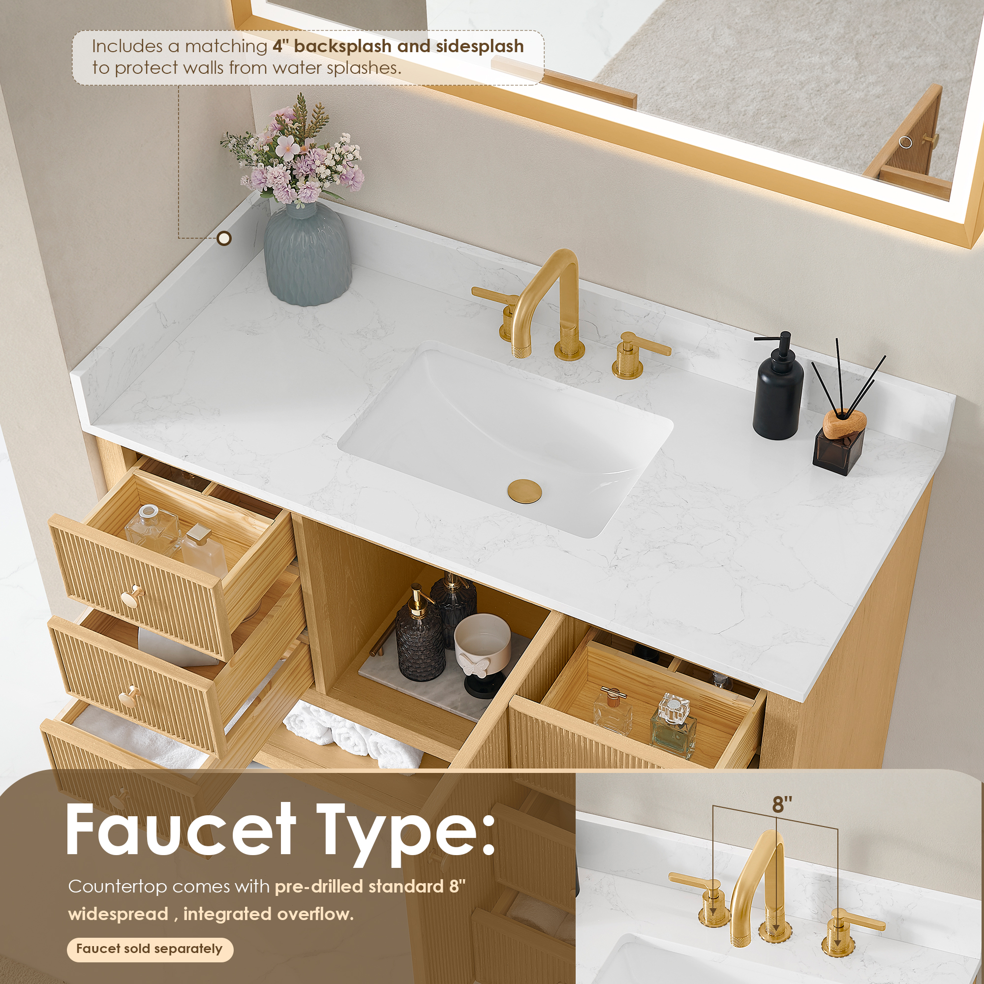 Faucet Type: Pre-drilled with standard 8" widespread faucet holes for straightforward installation. (Faucet sold separately)