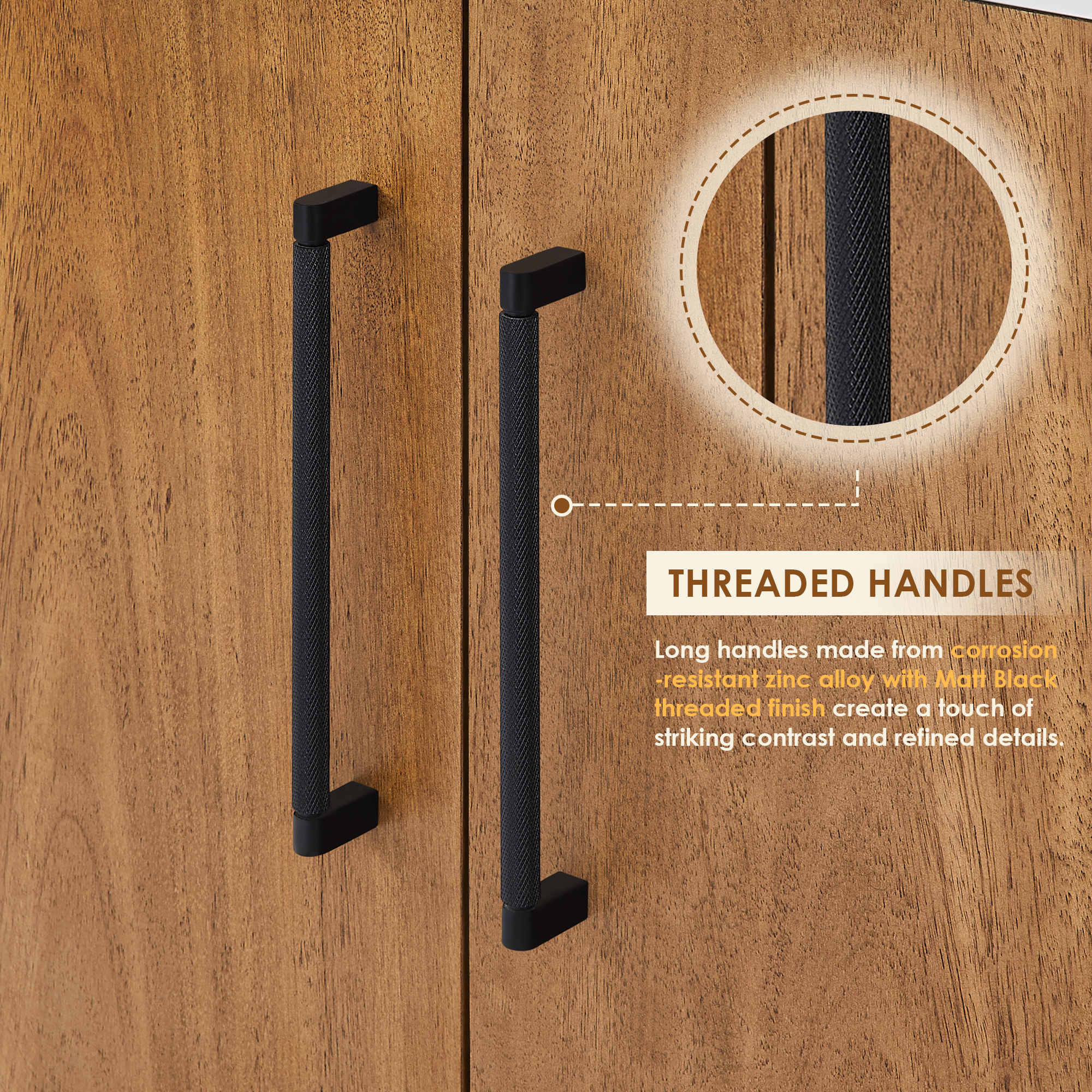 Striking threaded handles: Made from corrosion-resistant zinc alloy, the handles feature a Matte Black threaded finish to add a touch of bold contrast and refinement.