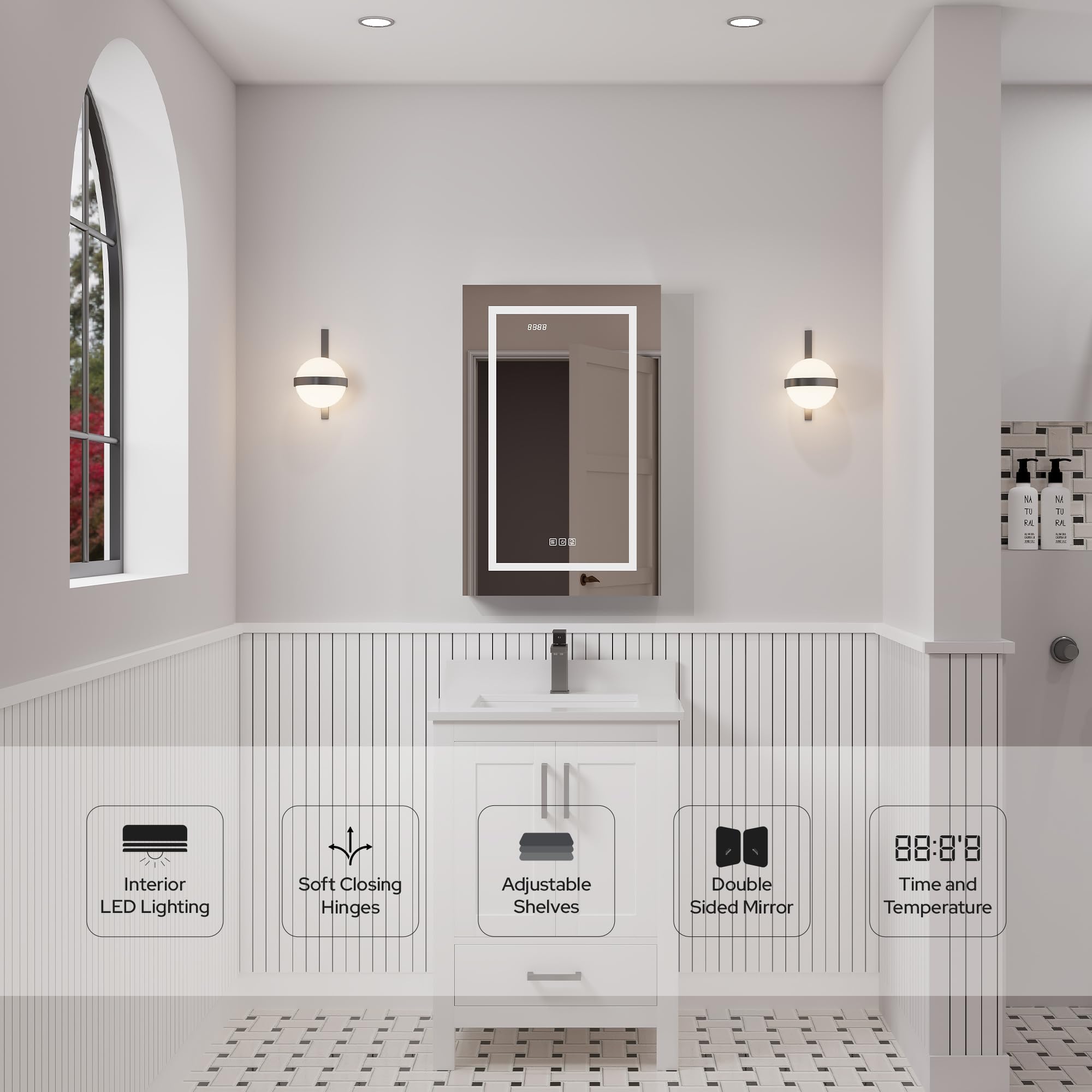 LV 20" Single Door Bathroom LED Mirror Cabinet - Left Side Door Opening