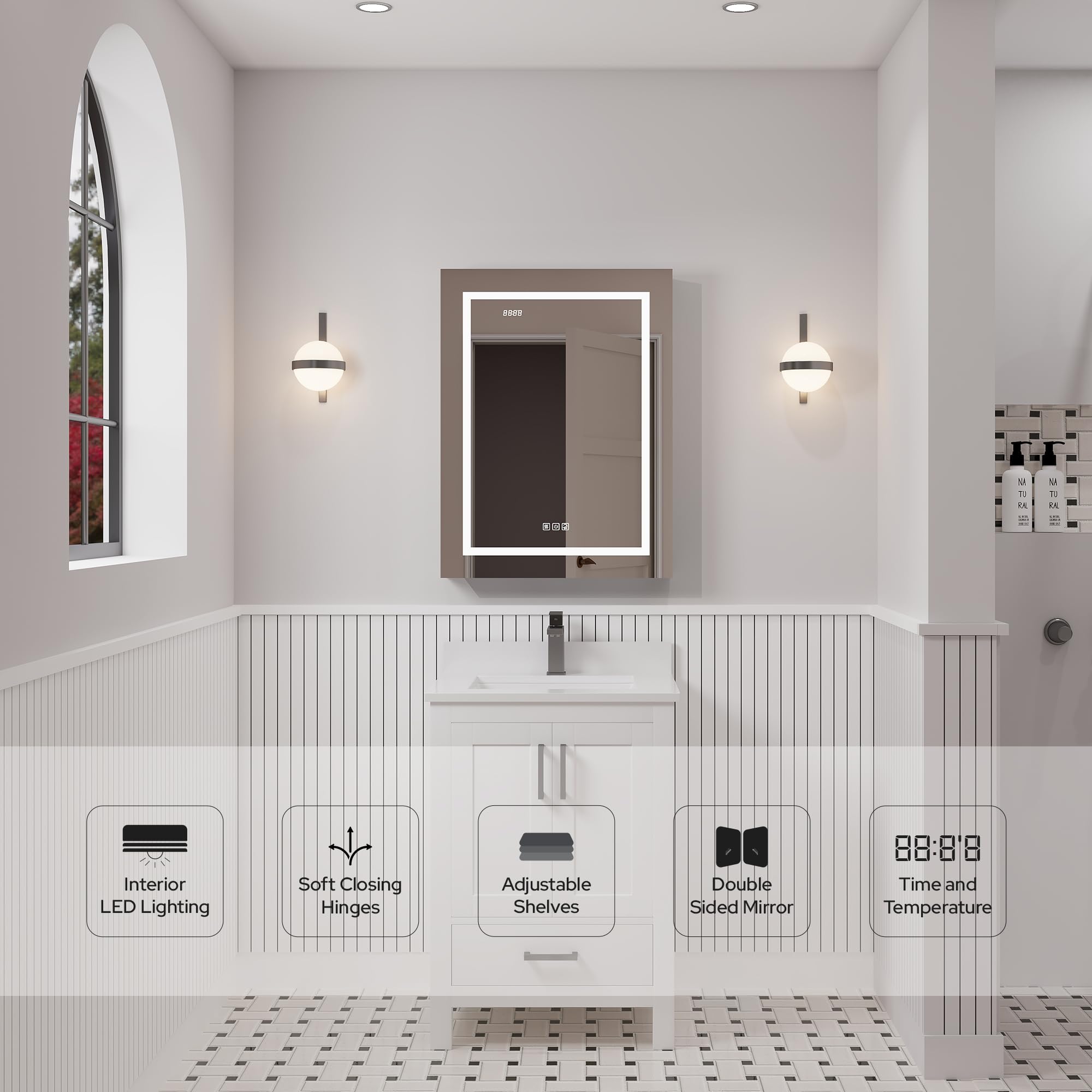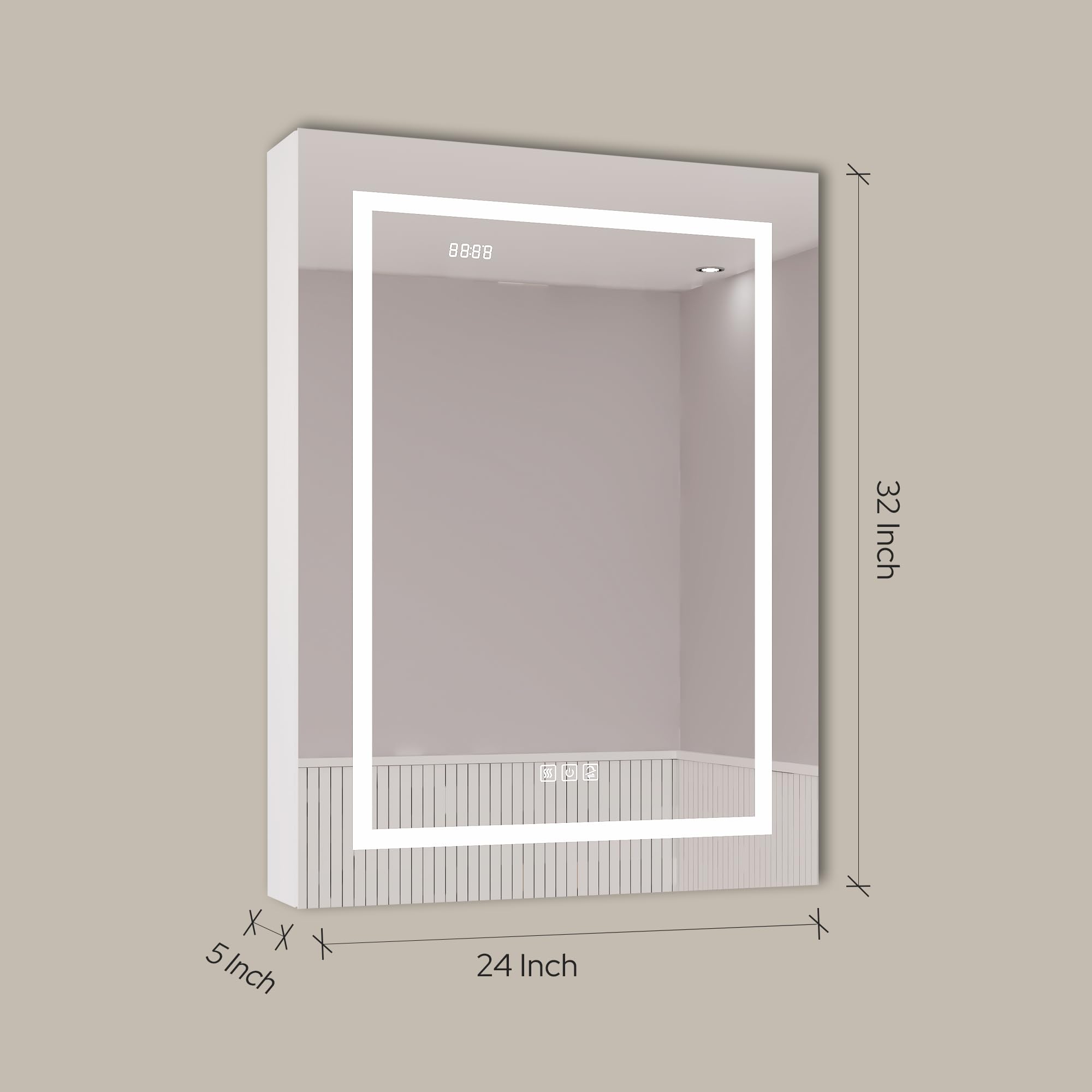 LV 24" Single Door Bathroom LED Mirror Cabinet - Left Side Door Opening