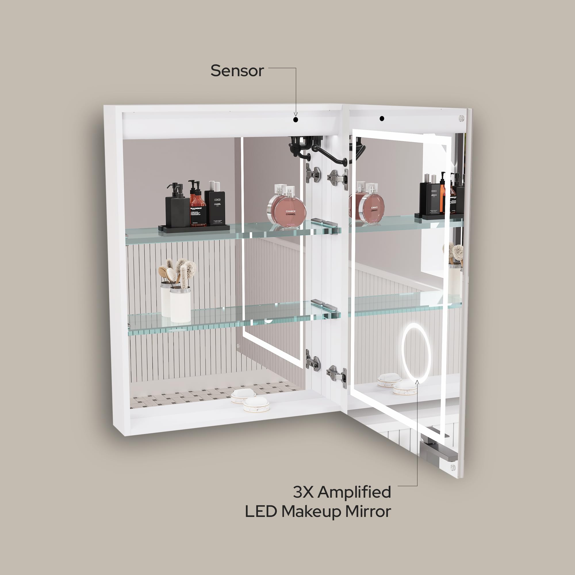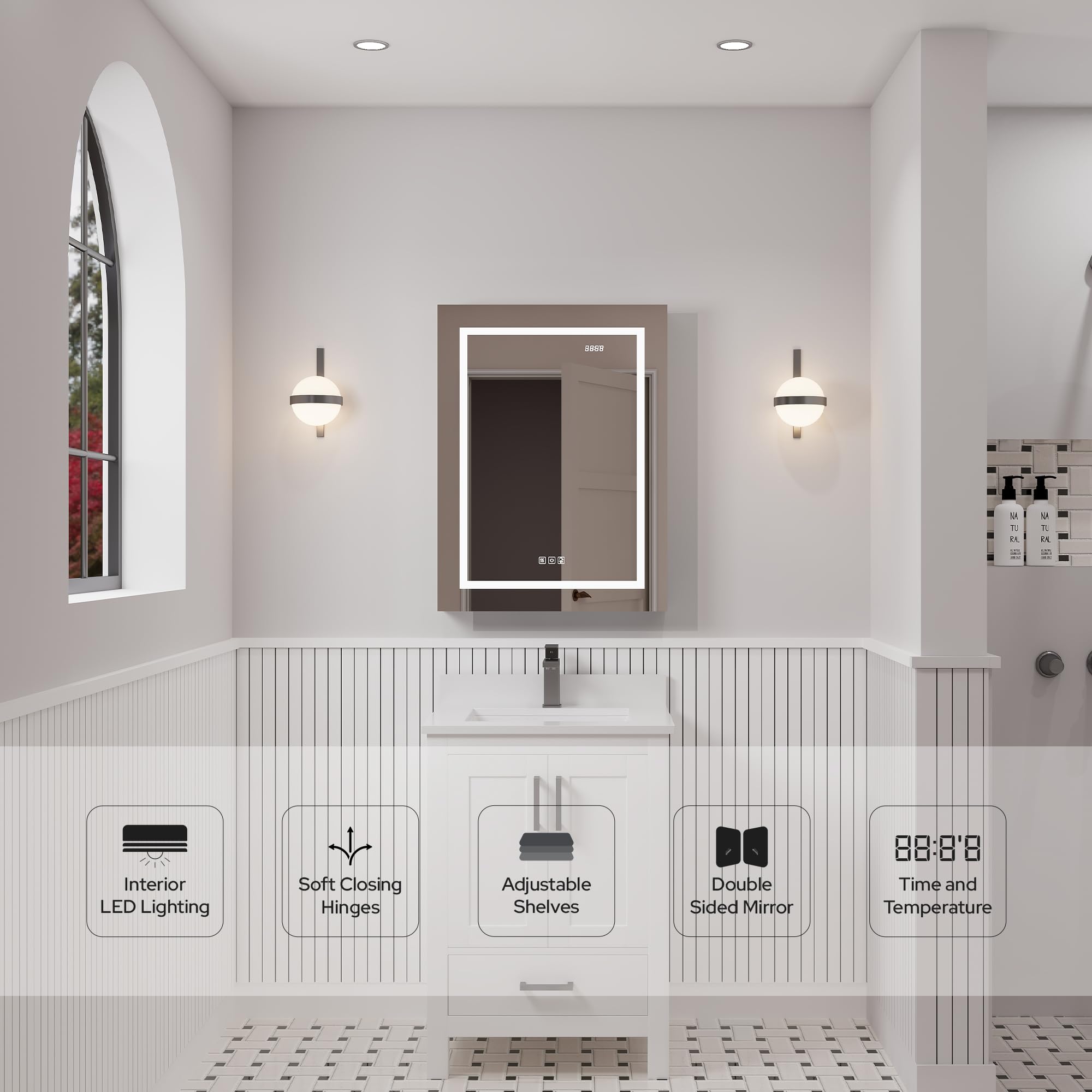 LV 24" Single Door Bathroom LED Mirror Cabinet - Right Side Door Opening