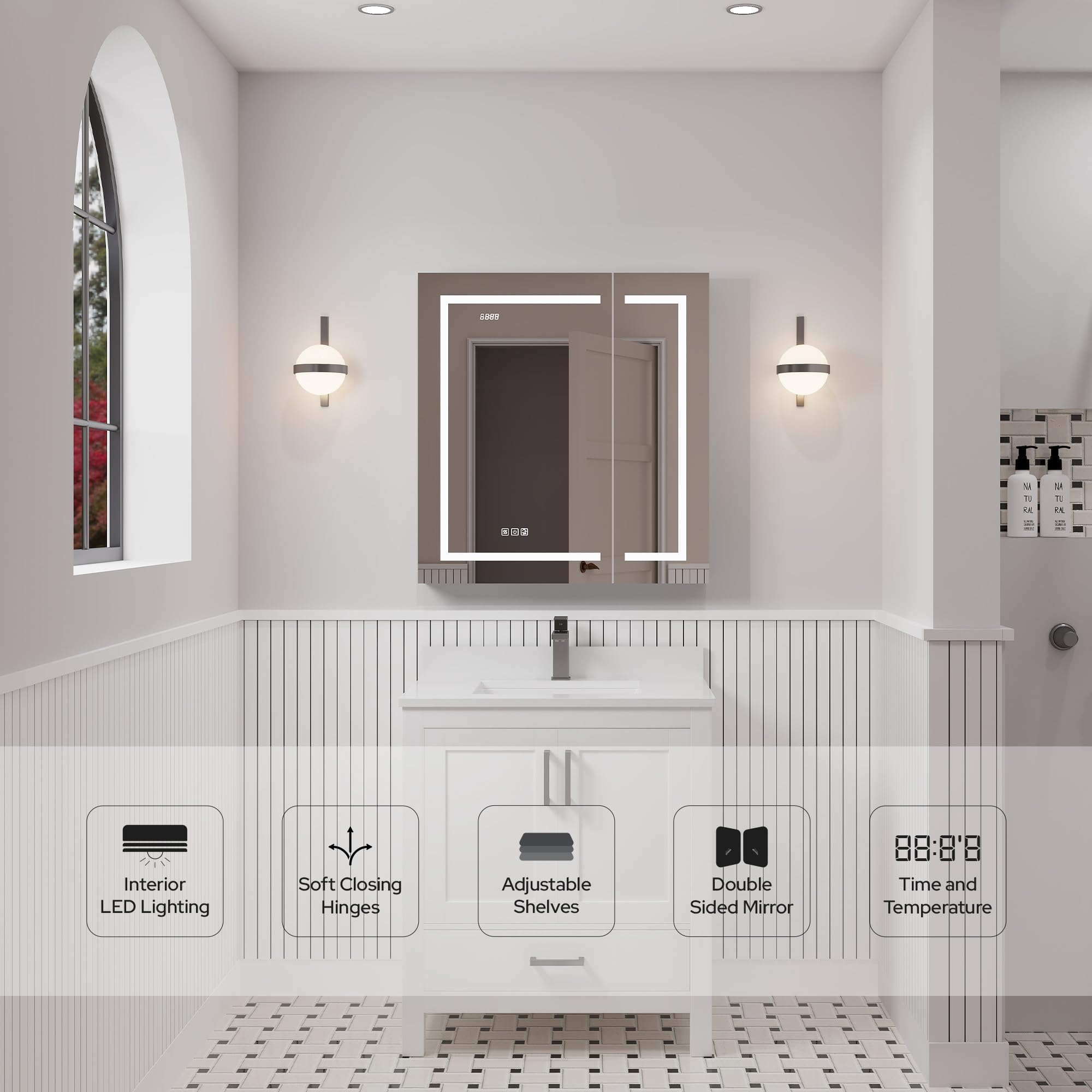 LV 30" Double Doors Bathroom LED Mirror Cabinet