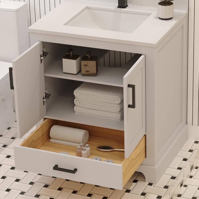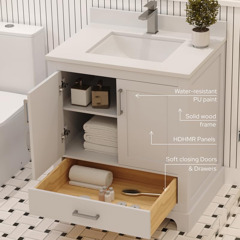 Compatible with 30-in W x 22-in D single-sink vanity tops, sold separately