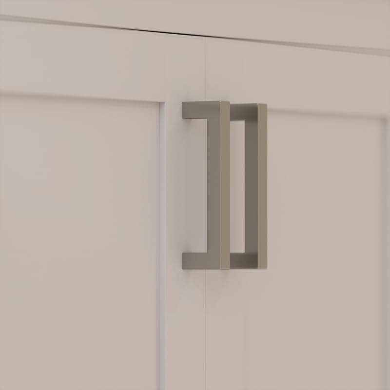 Elegant handles designed for a comfortable grip and packaged inside the cabinet for shipping protection