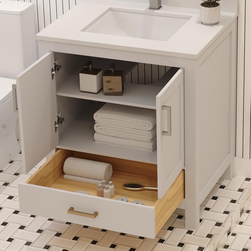 Compatible with 30-in W x 22-in D single-sink vanity tops, sold separately