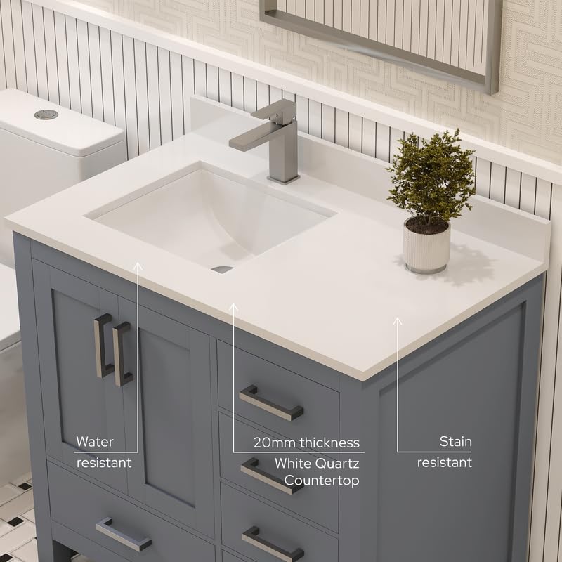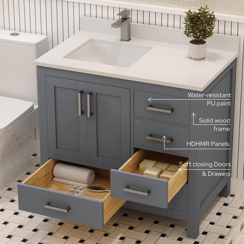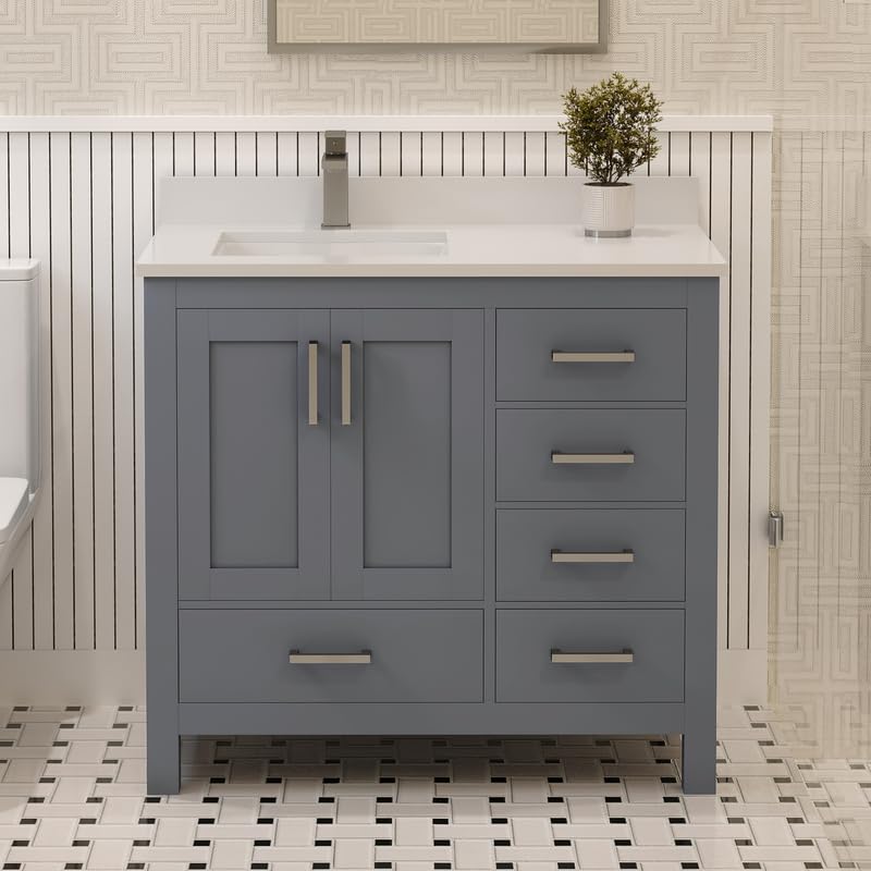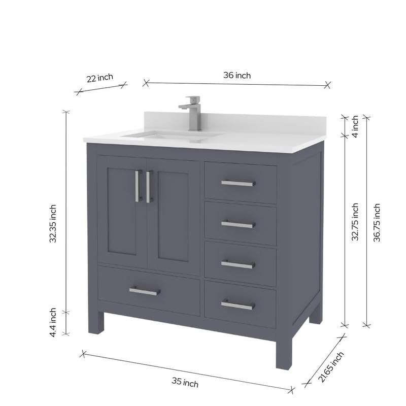 LV 36" Transitional Bath Vanity Left in Charcoal Grey with 3 Hardware Options, Base only, and Top Option