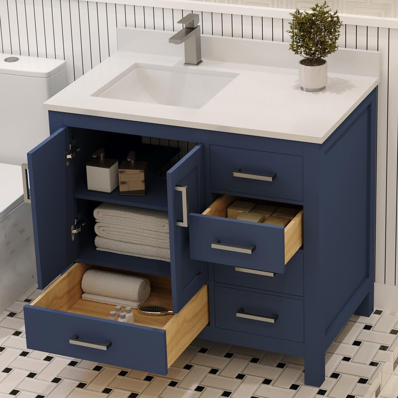 Compatible with 36-in W x 22-in D single-sink vanity tops, sold separately