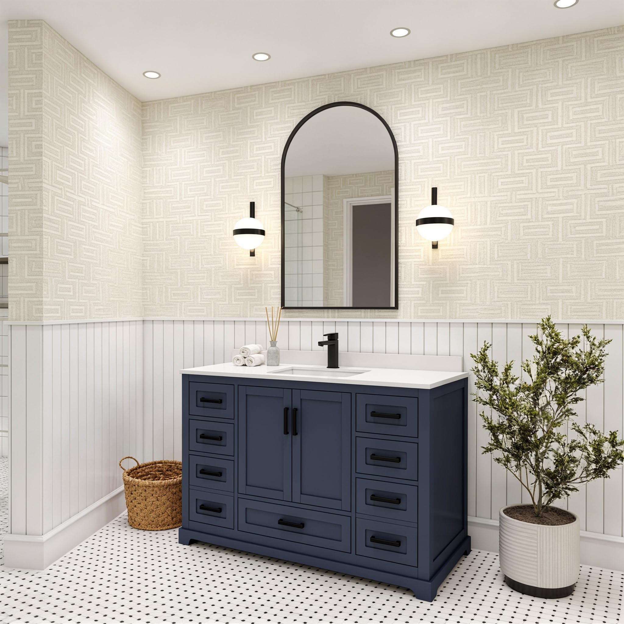 Compatible with 42-in W x 22-in D single-sink vanity tops, sold separately
