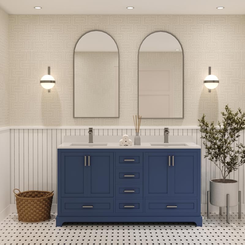 Compatible with 60-in W x 22-in D double-sink vanity tops, sold separately