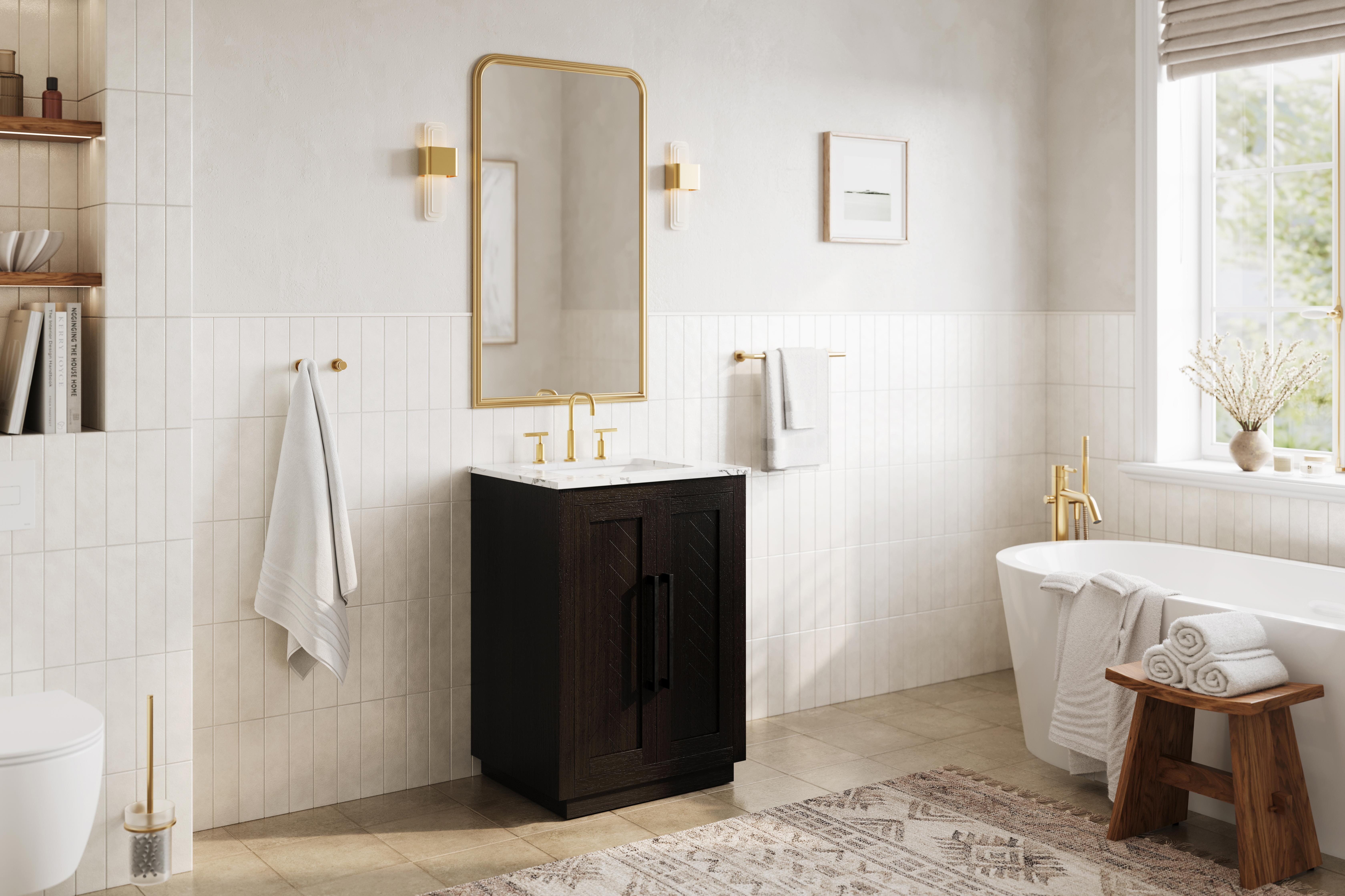 The vanity includes a concealed overflow, keeping the design sleek and uninterrupted, while ensuring practical overflow protection.