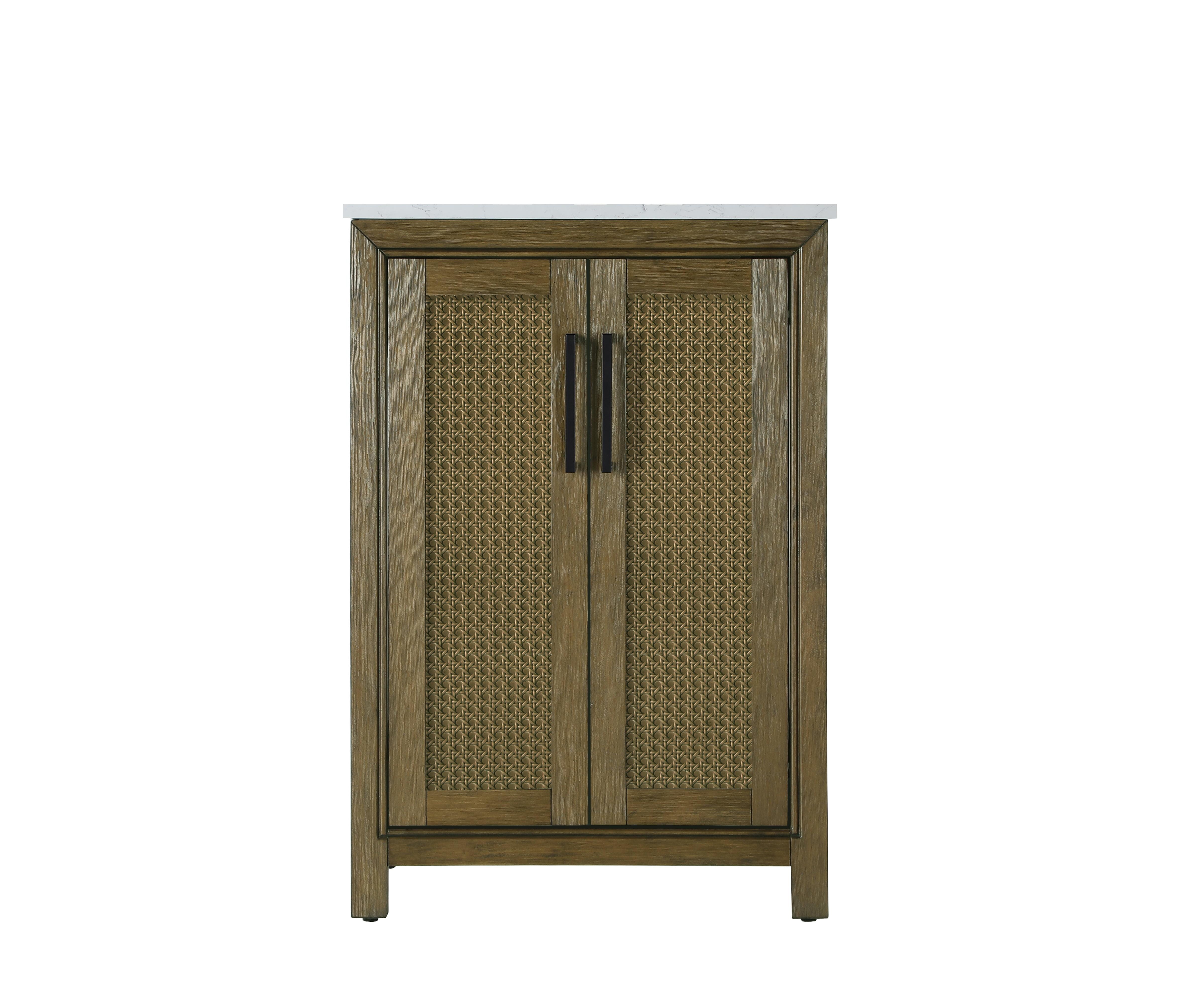 The shaker-style door panels feature a subtle caning design, adding texture and visual interest while maintaining a clean and timeless aesthetic.