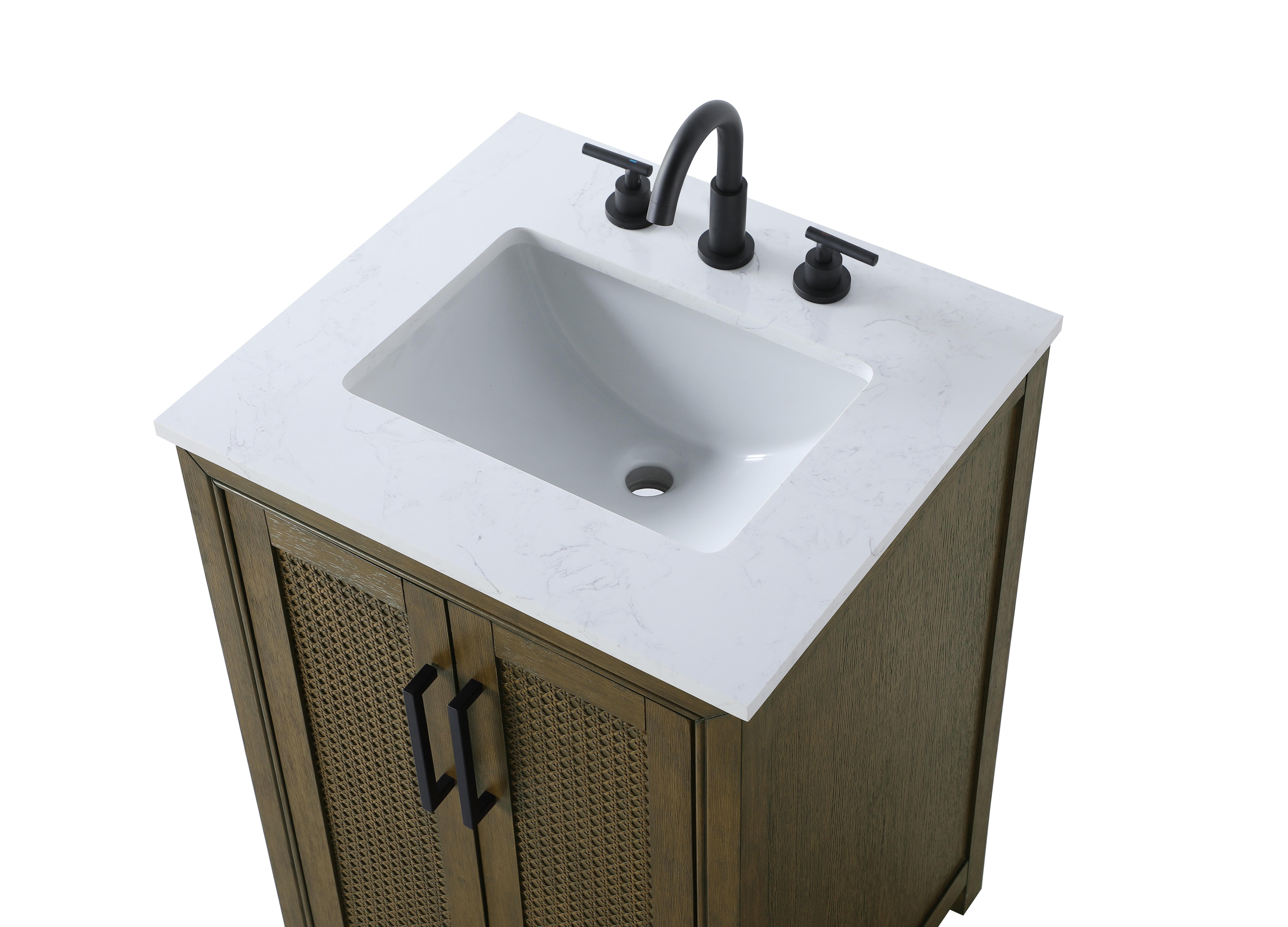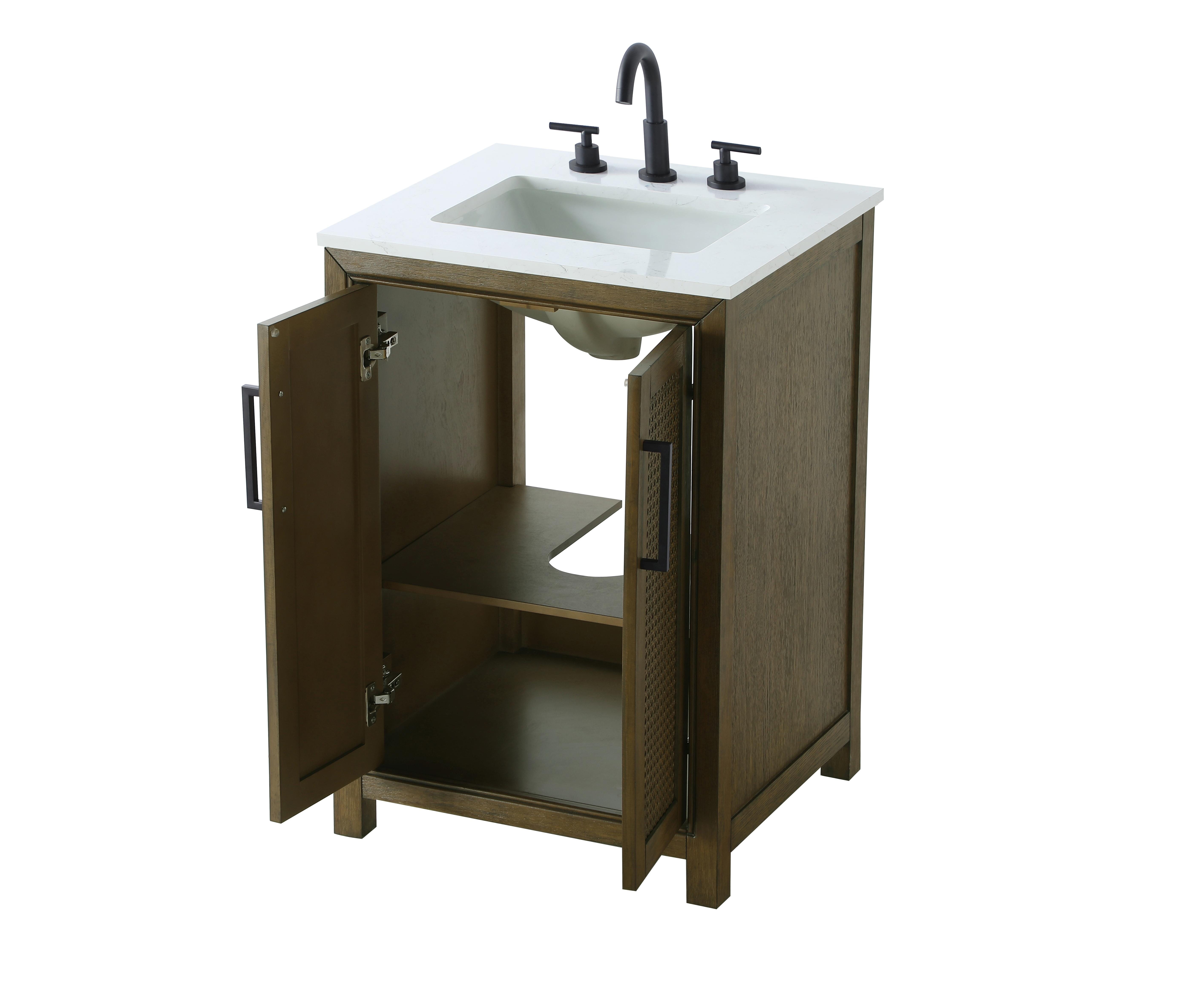 Perfect for those with an eye for detail and quality, this Modern Fitting transitional vanity blends modern design with timeless elegance. Available in five stunning finishes, from Crisp White to Linen Oak, the wood grain visuals of the oak options bring warmth and character to any bathroom. The caning design on the Shaker-style door panels adds texture and a touch of refinement, while the soft-closing doors ensure smooth, quiet functionality. Topped with a white marble countertop, the vanity offers both luxury and practicality, complete with pre-drilled faucet holes for customization. A concealed overflow and U-shaped shelf for plumbing make installation effortless, and the slender black metal pulls provide a sleek contrast.