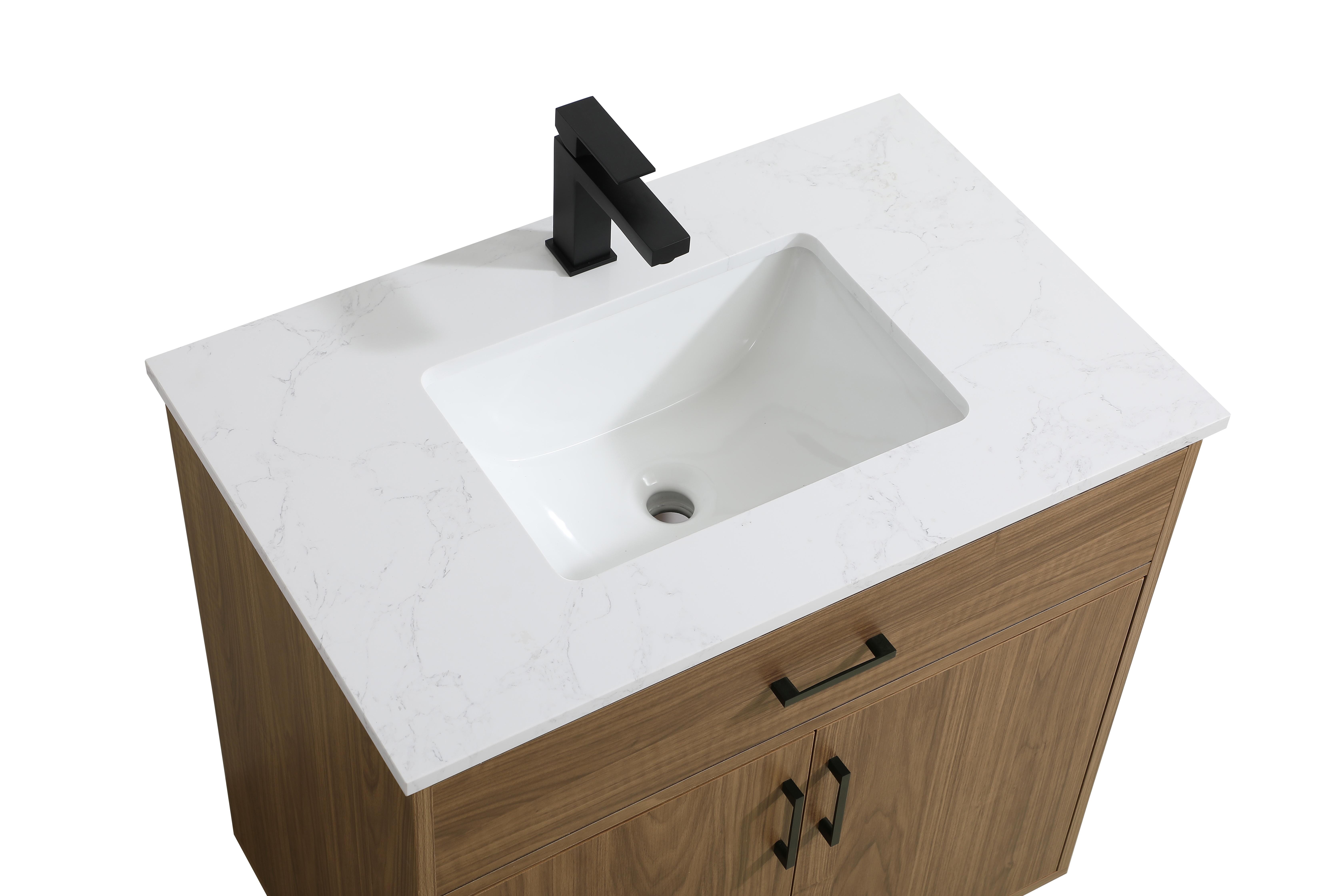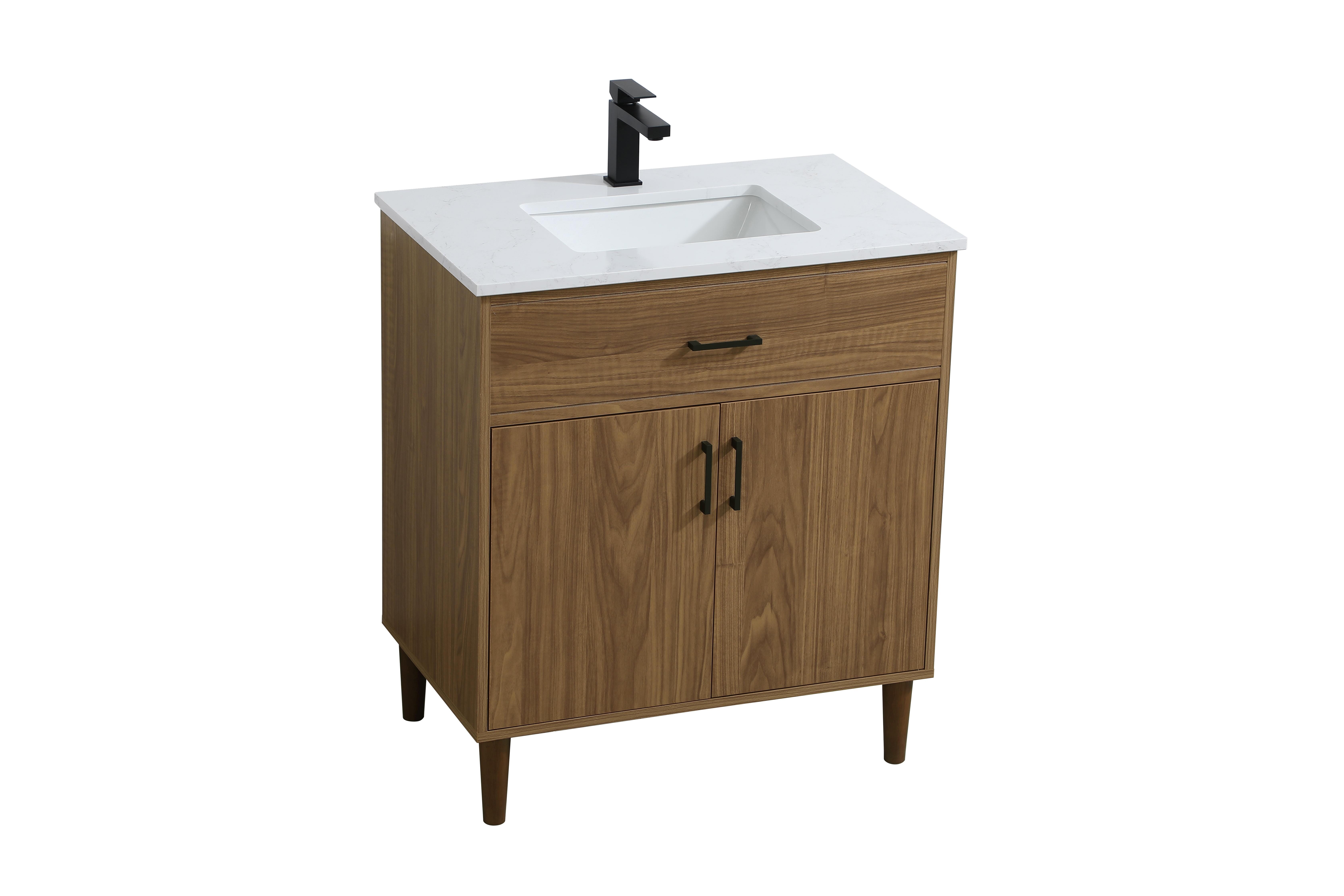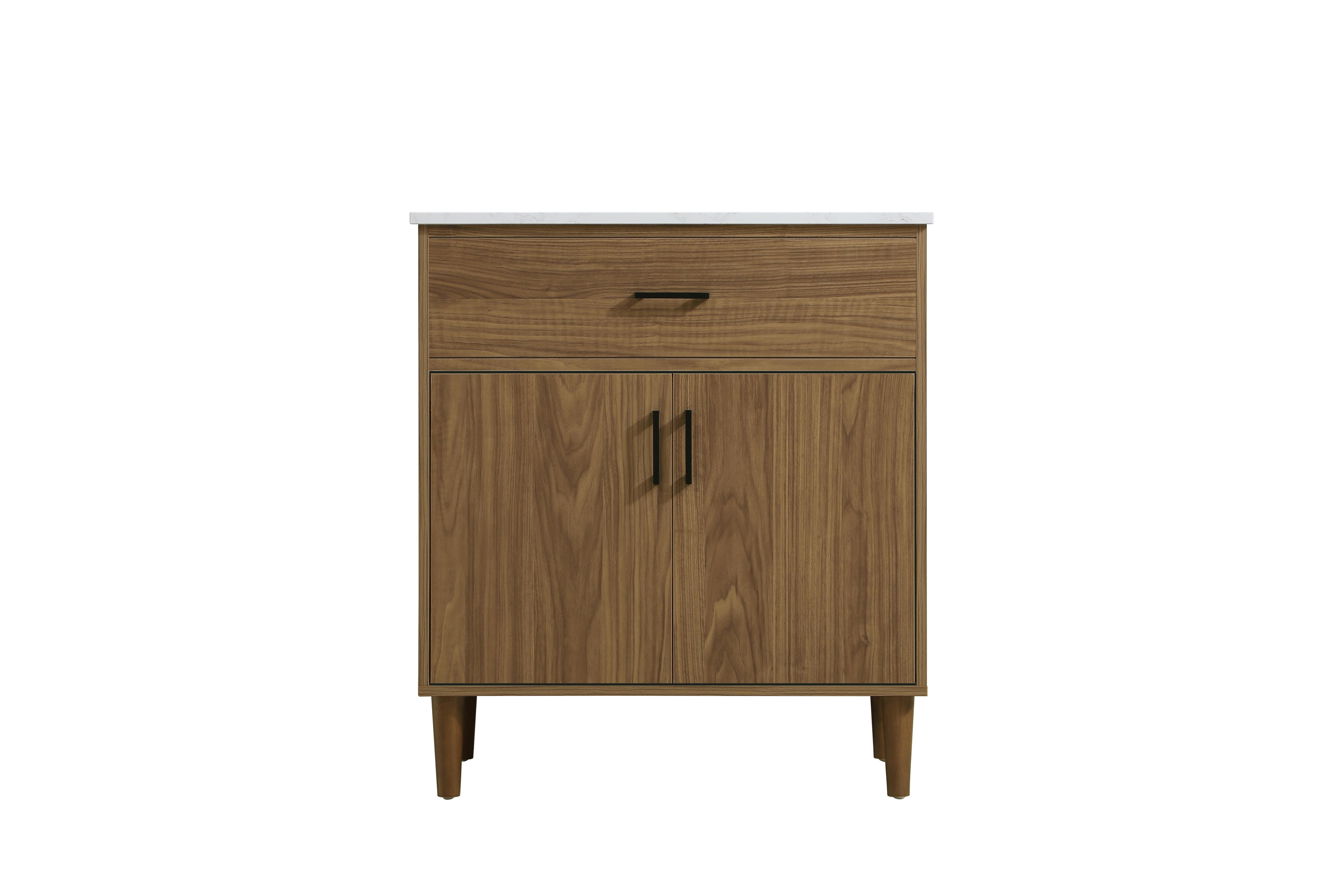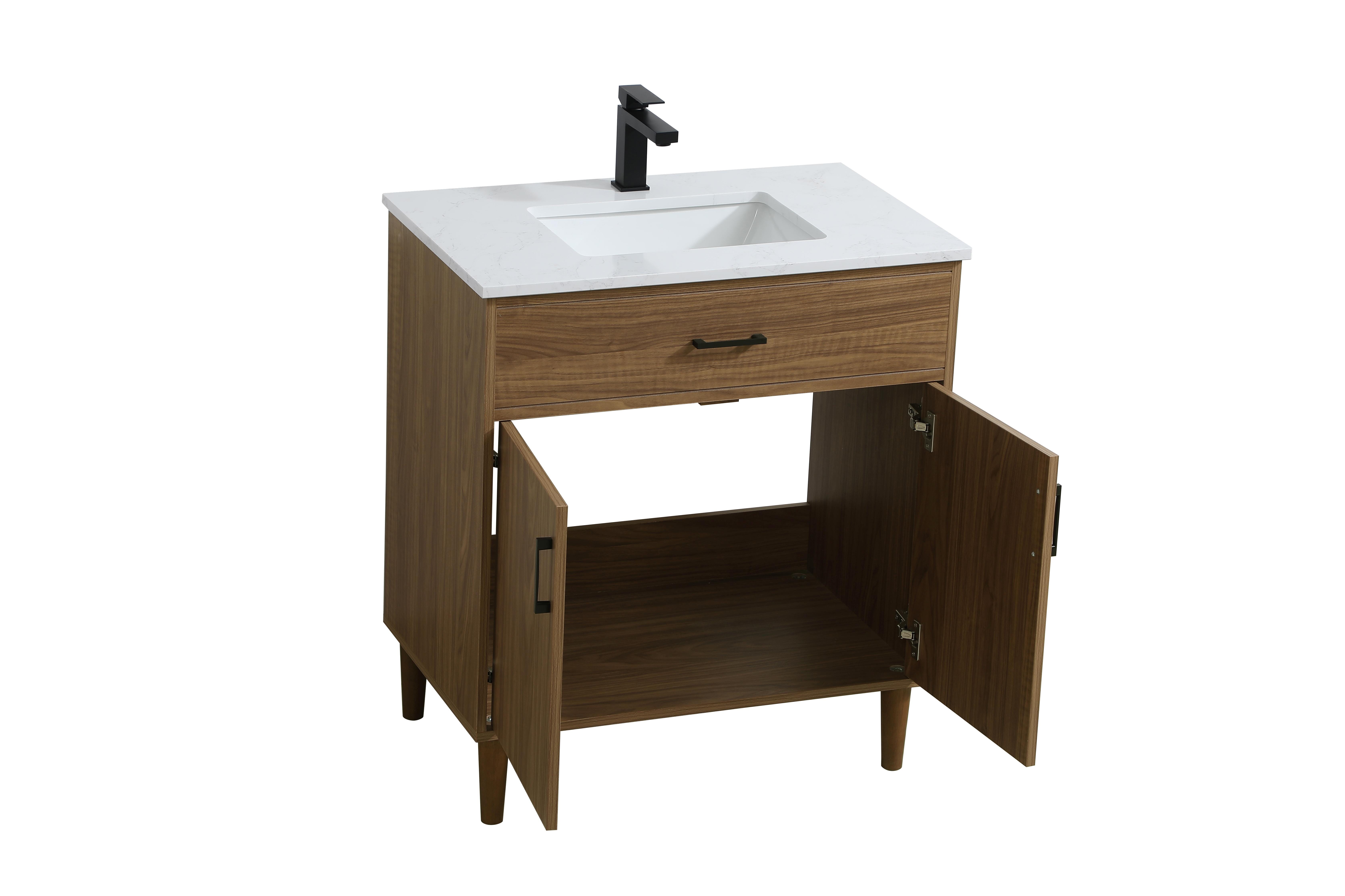 Modern Fitting 30-inch Midcentury Single Bathroom Vanity in Walnut Brown Finish