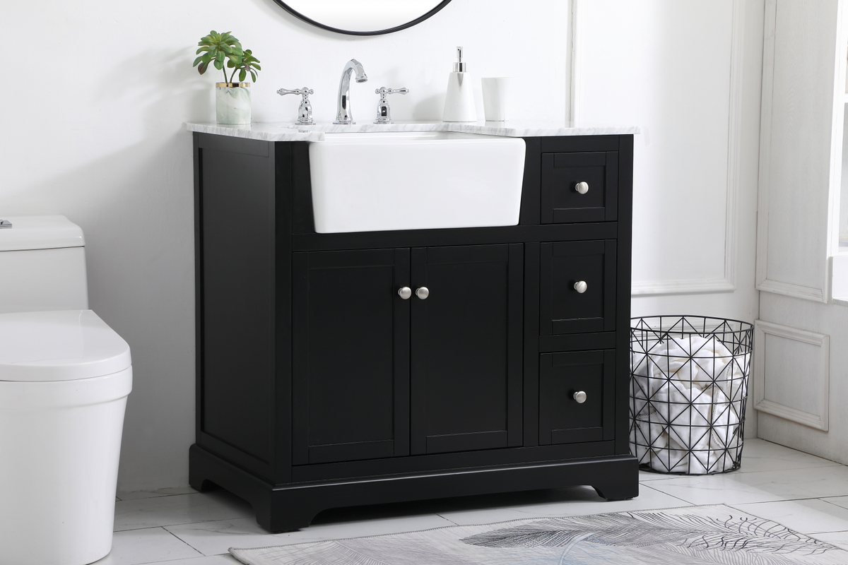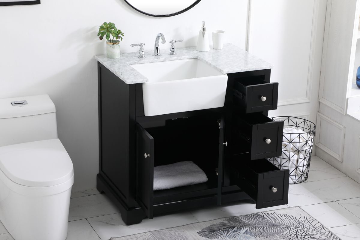 Modern Fitting 36 inch Single Bathroom Vanity in Black with Backsplash Option