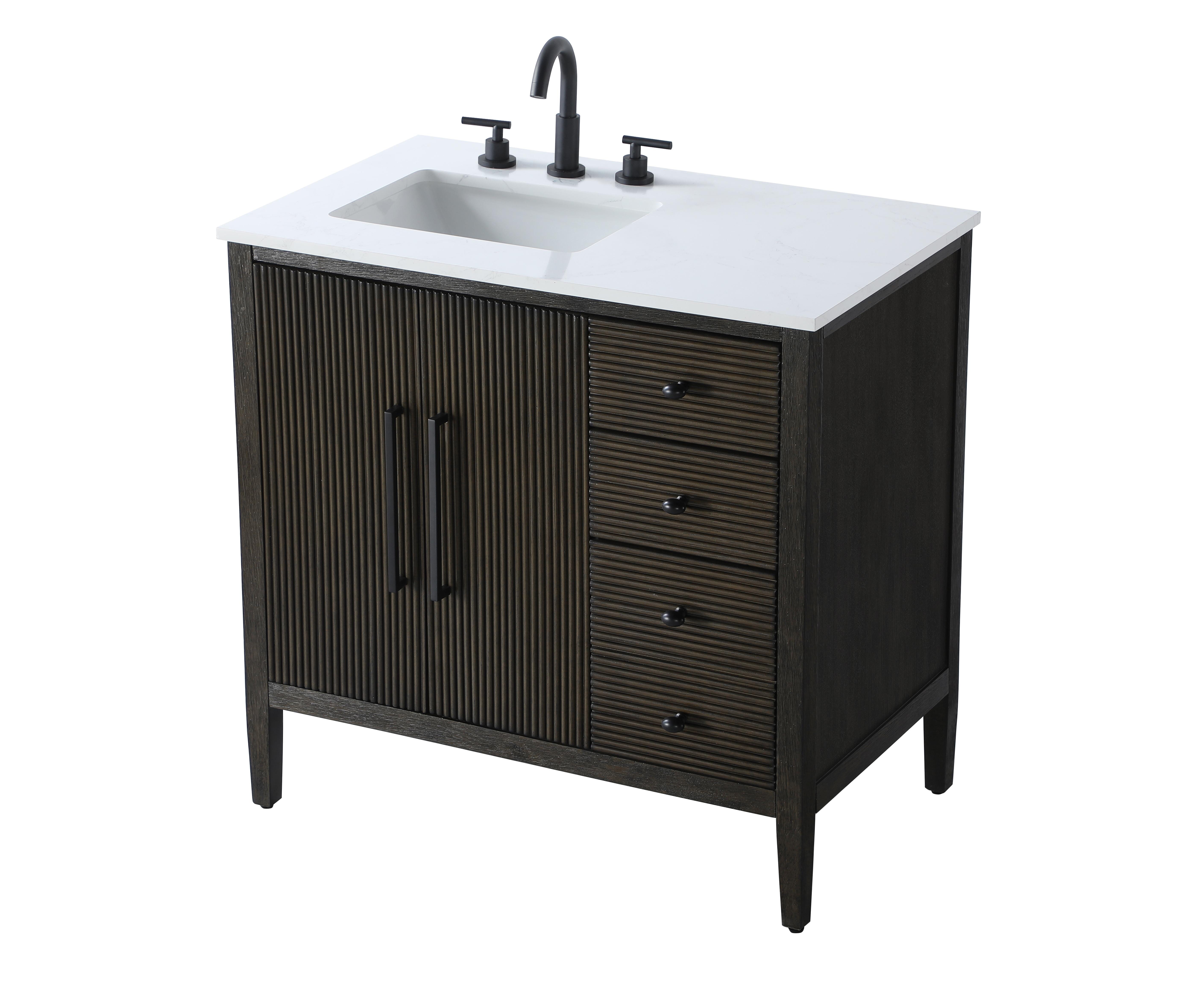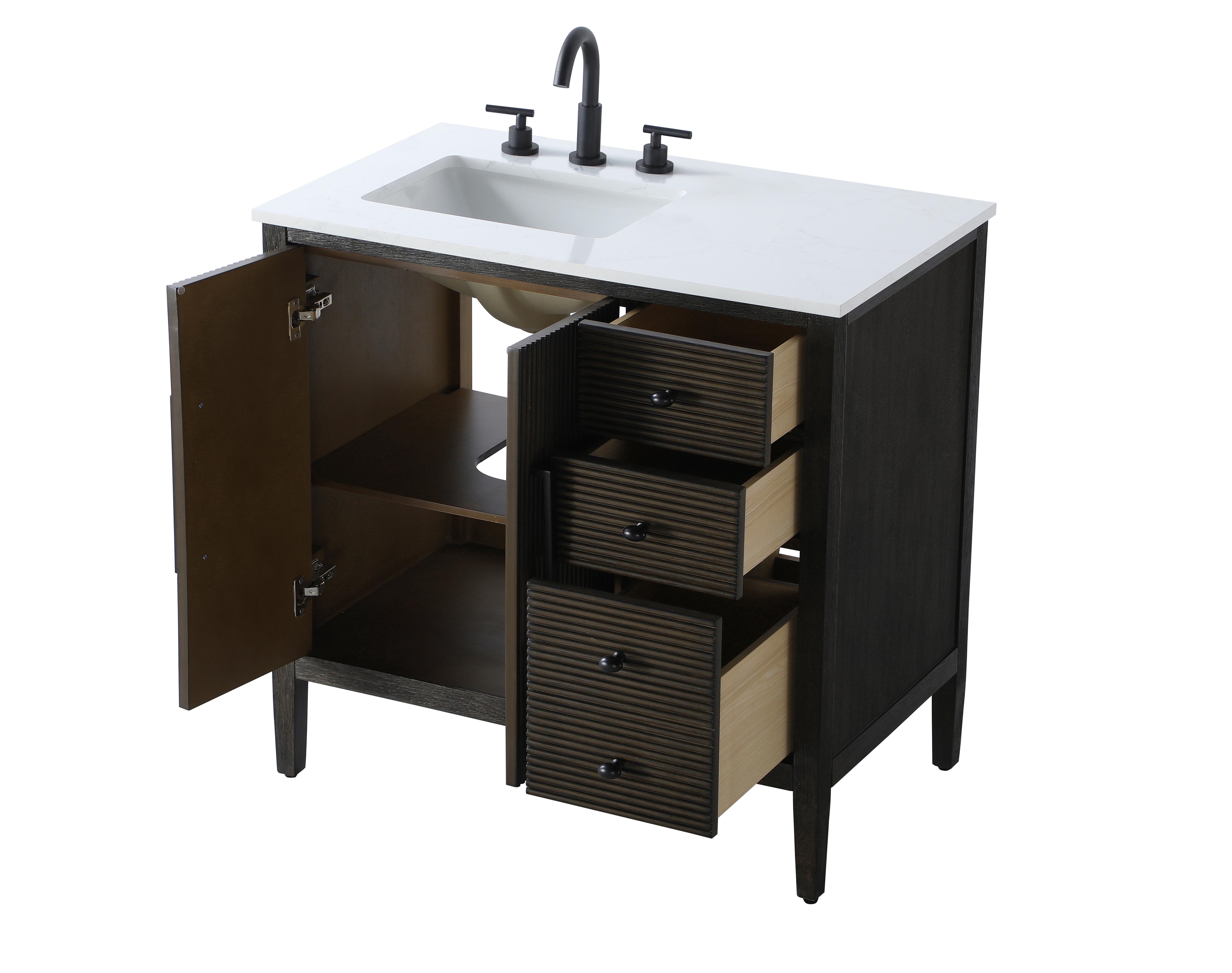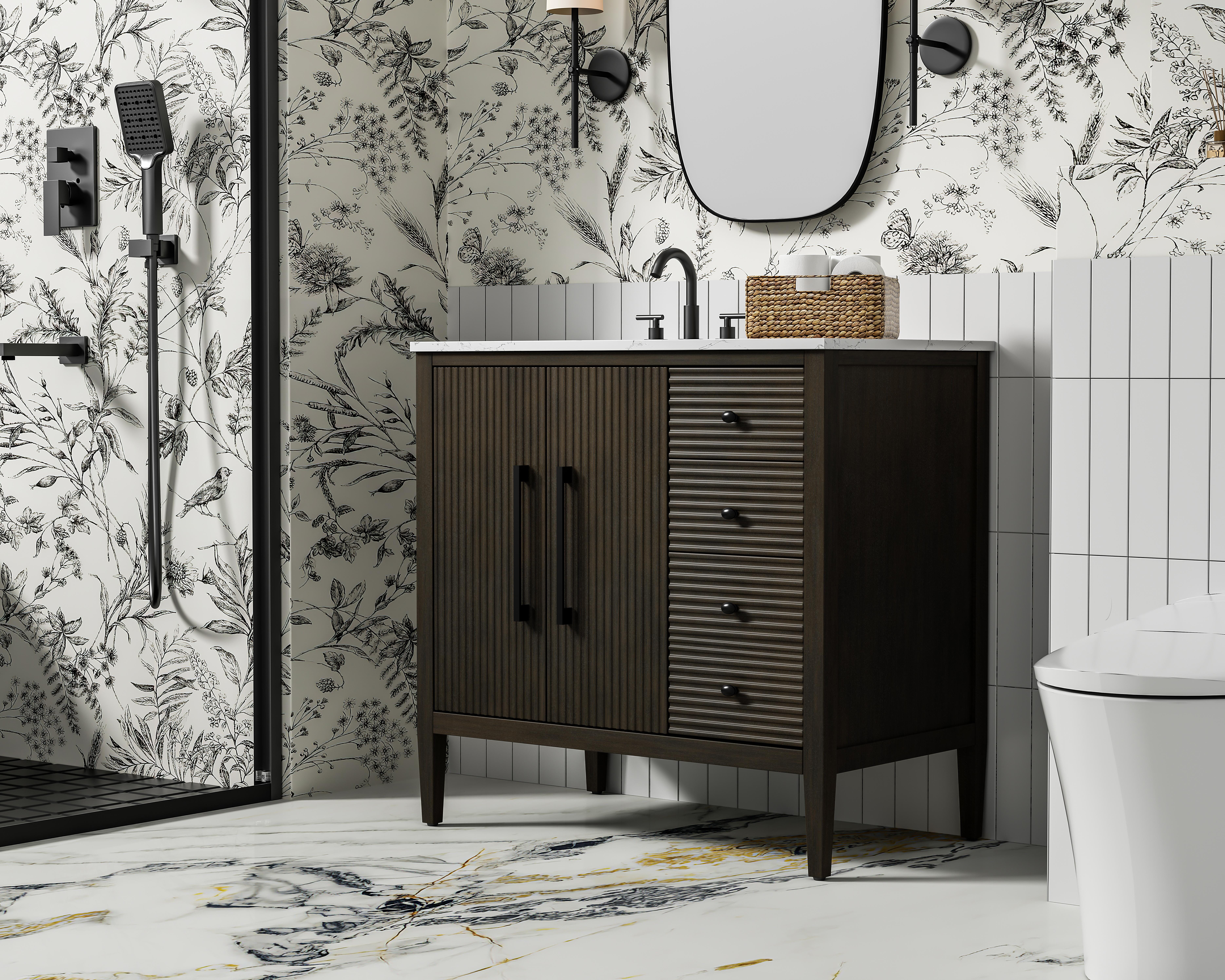 Designed with transitional elegance in mind, this Modern Fitting bathroom vanity seamlessly blends traditional elements with modern functionality. Available in five stunning finishes, from the clean sophistication of Crisp White to the natural warmth of Honey Oak, the fluted door and drawer panels add subtle texture and charm. The white marble countertop with natural veining exudes luxury, while the soft-closing doors with sleek black metal pulls offer a quiet, refined experience. Practicality is never compromised, with features like the U-shaped shelf for plumbing, and pre-drilled faucet holes for easy customization. Whether your style leans modern or classic, this vanity is the perfect balance of beauty and function, appealing to customers with a taste for quality and style.