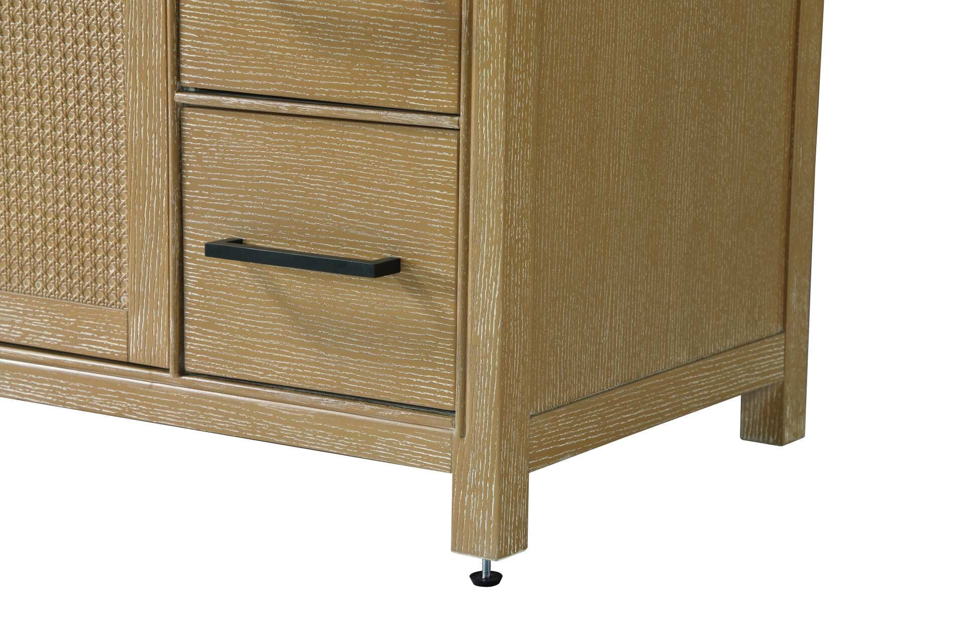 The shaker-style door panels feature a subtle caning design, adding texture and visual interest while maintaining a clean and timeless aesthetic.