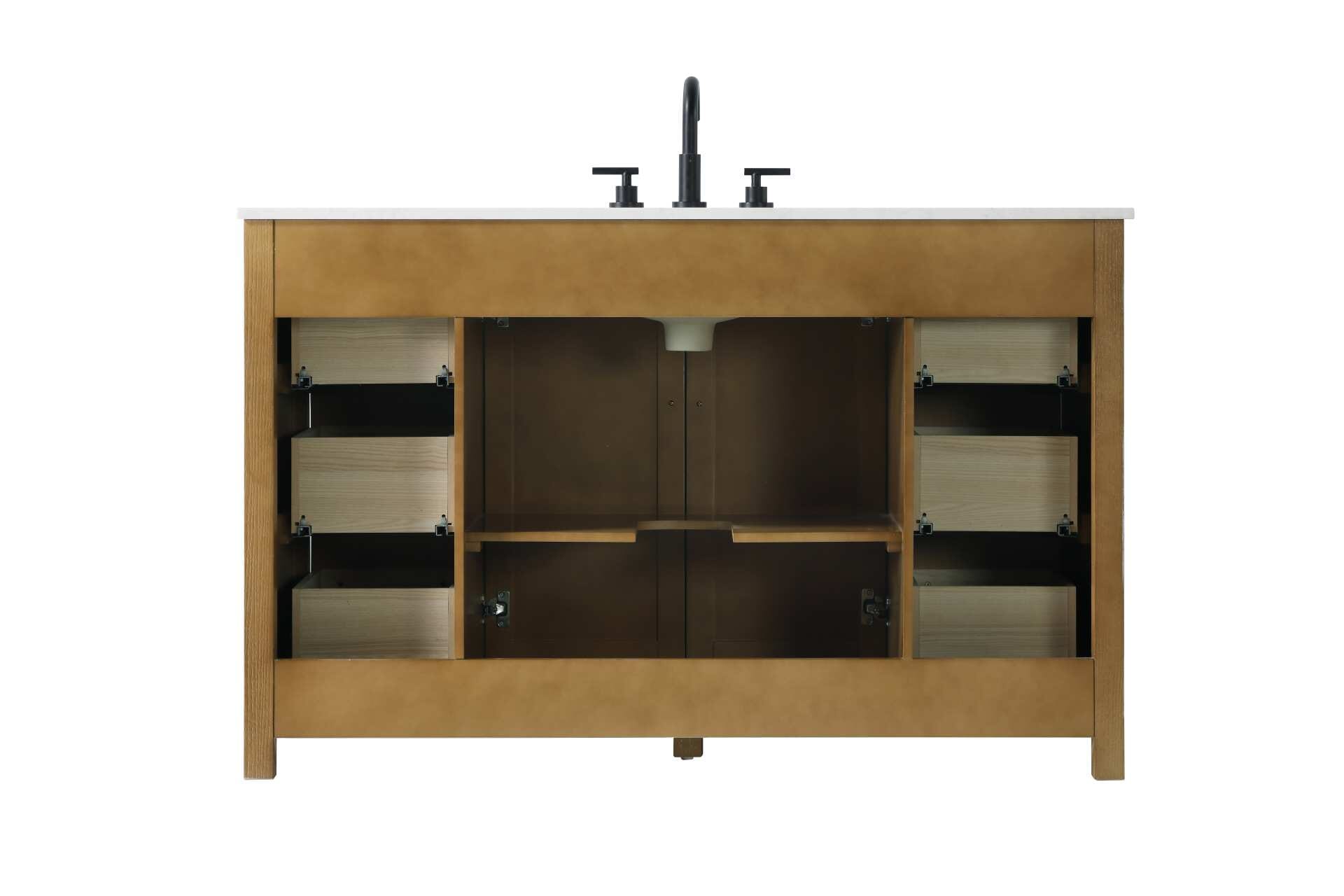 This vanity ships fully assembled, saving time and effort during installation.