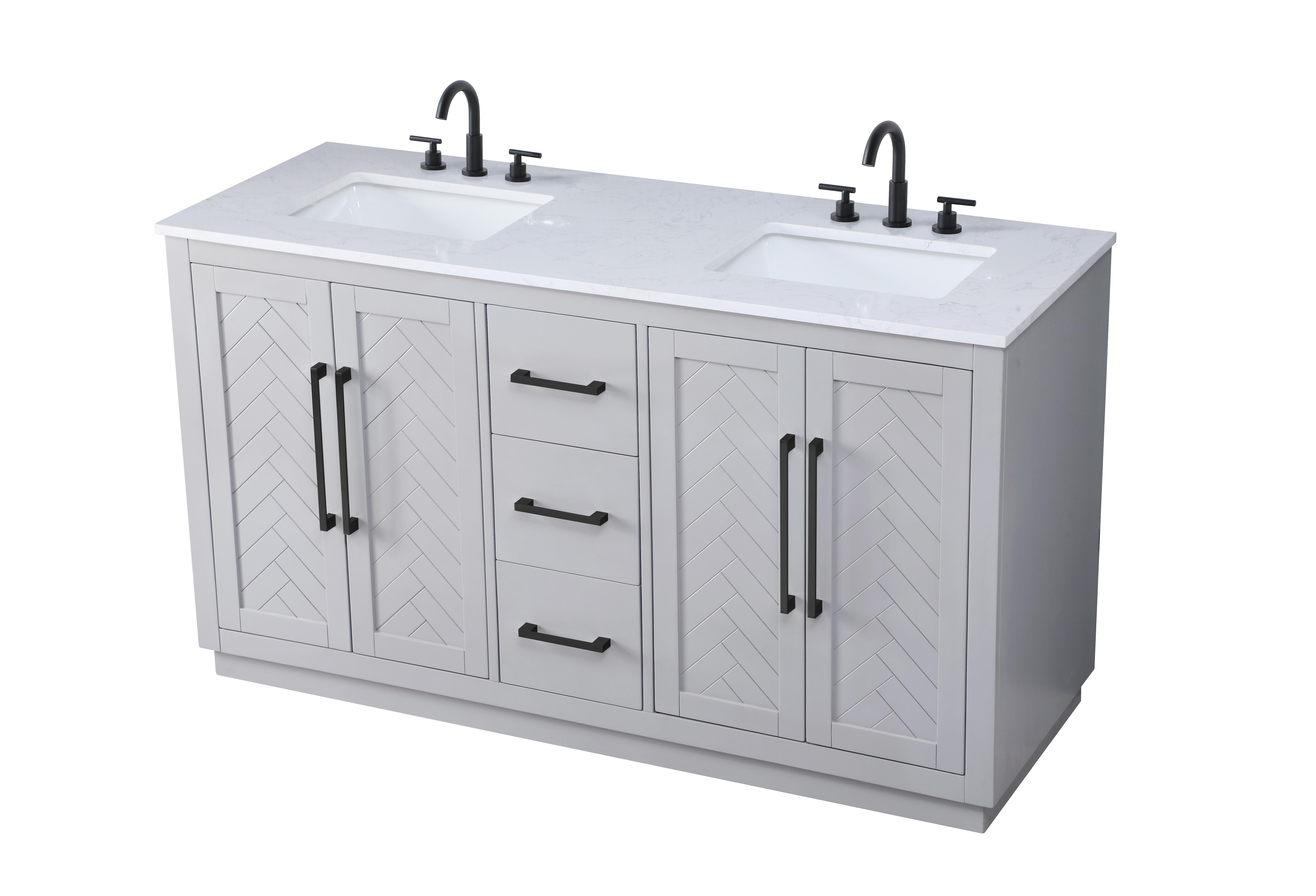 Each finish enhances the unique herringbone design on the Shaker-style door panels, adding a touch of craftsmanship and texture that elevates the overall design of the vanity.