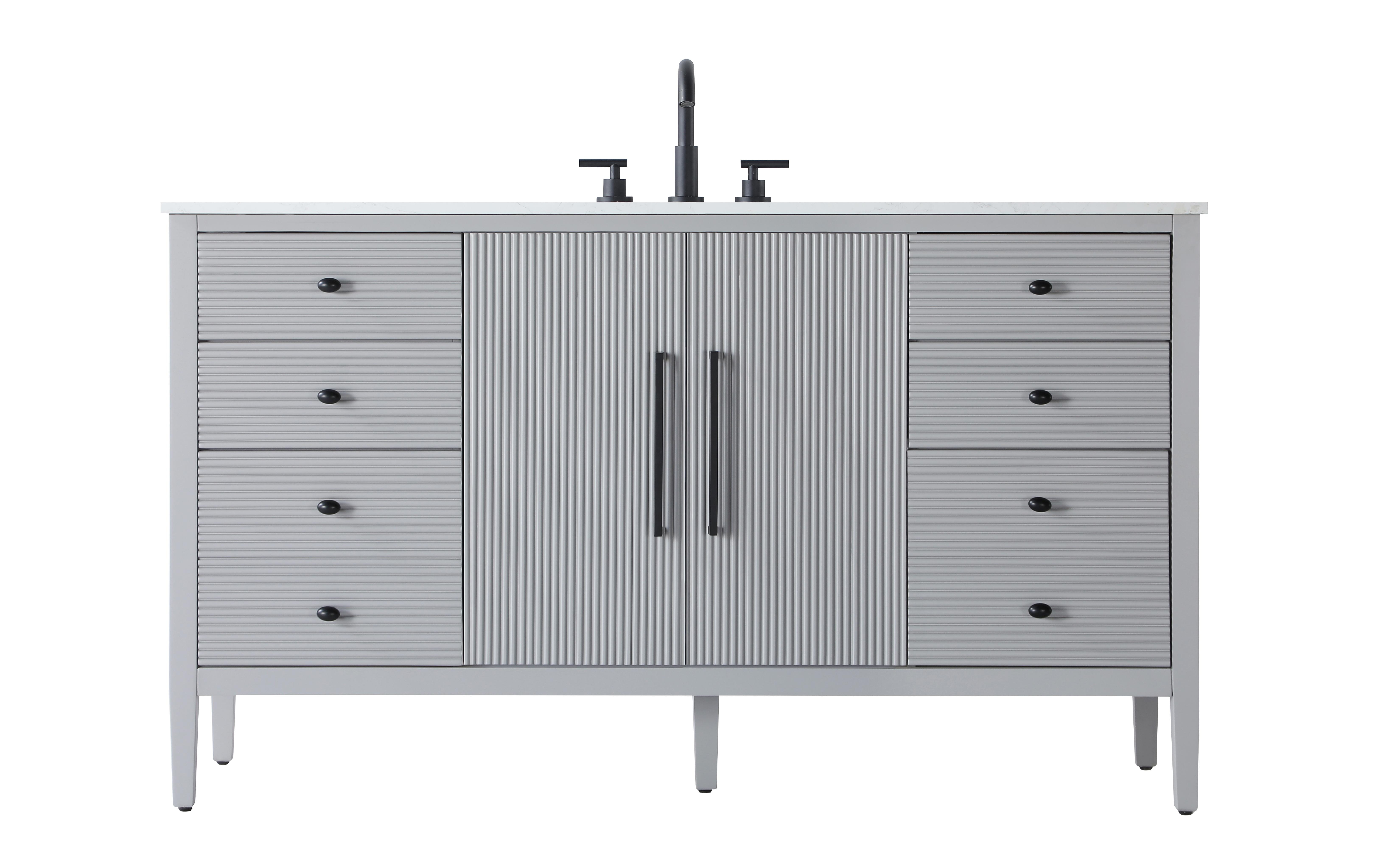 Designed with transitional elegance in mind, this Modern Fitting bathroom vanity seamlessly blends traditional elements with modern functionality. Available in five stunning finishes, from the clean sophistication of Crisp White to the natural warmth of Honey Oak, the fluted door and drawer panels add subtle texture and charm. The white marble countertop with natural veining exudes luxury, while the soft-closing doors with sleek black metal pulls offer a quiet, refined experience. Practicality is never compromised, with features like the U-shaped shelf for plumbing, and pre-drilled faucet holes for easy customization. Whether your style leans modern or classic, this vanity is the perfect balance of beauty and function, appealing to customers with a taste for quality and style.