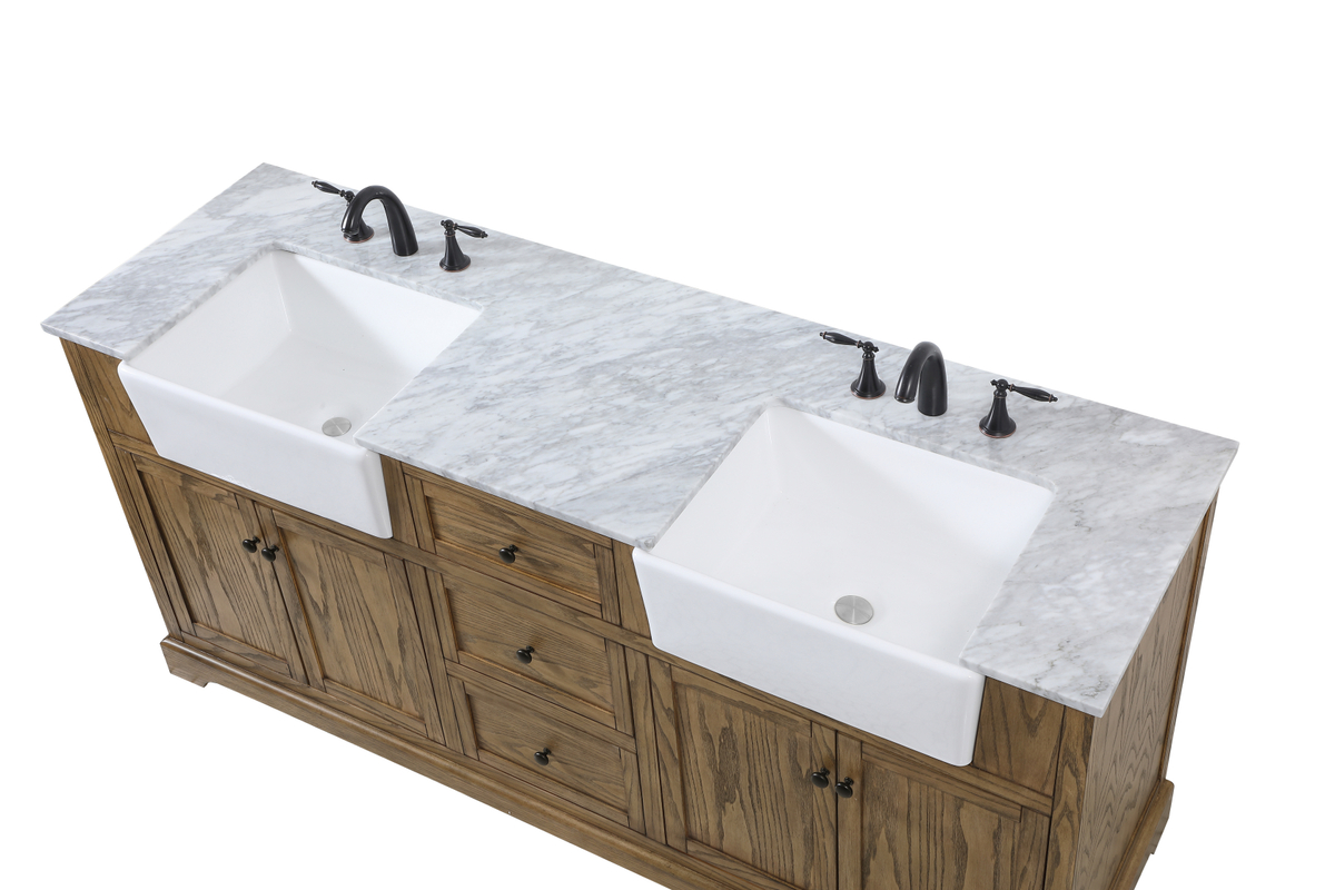 Modern Fitting 72 inch Double Bathroom Vanity in Driftwood Finish