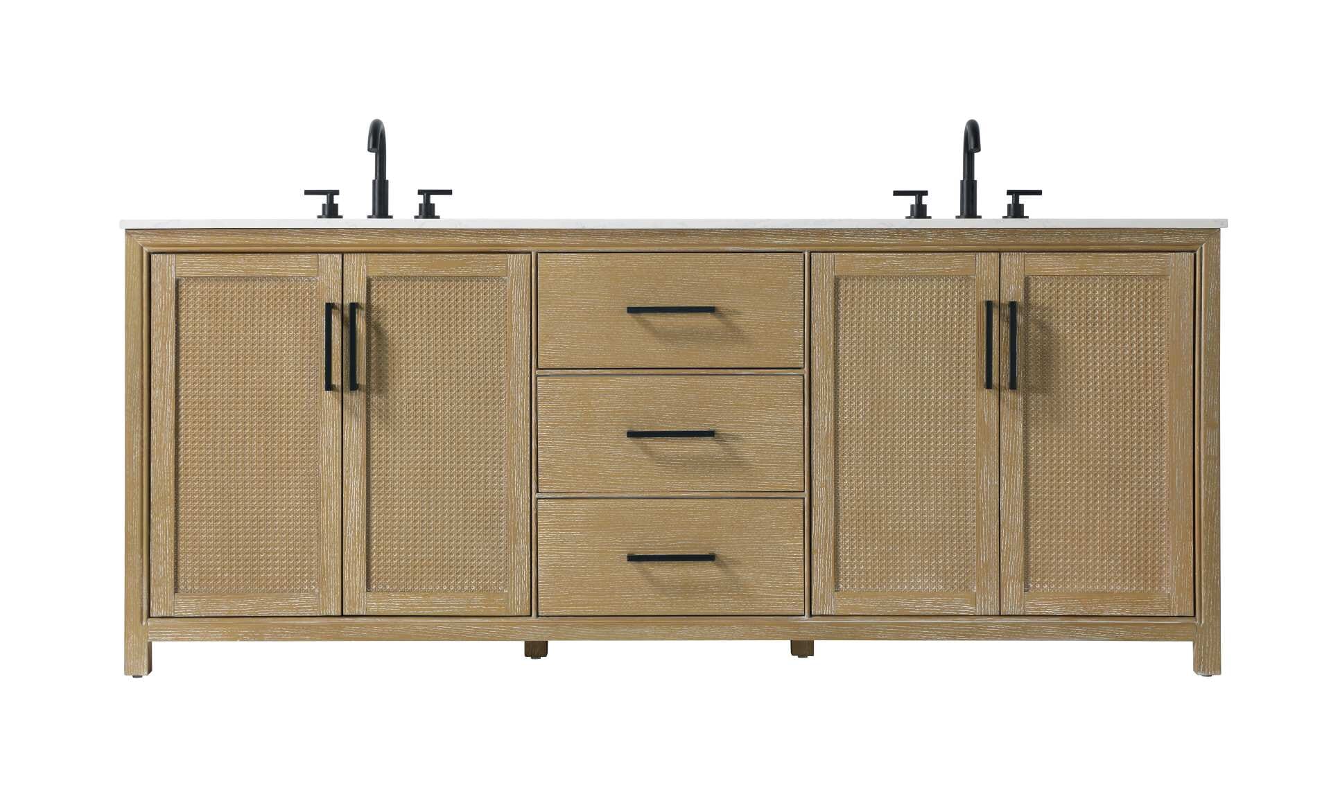 The shaker-style door panels feature a subtle caning design, adding texture and visual interest while maintaining a clean and timeless aesthetic.