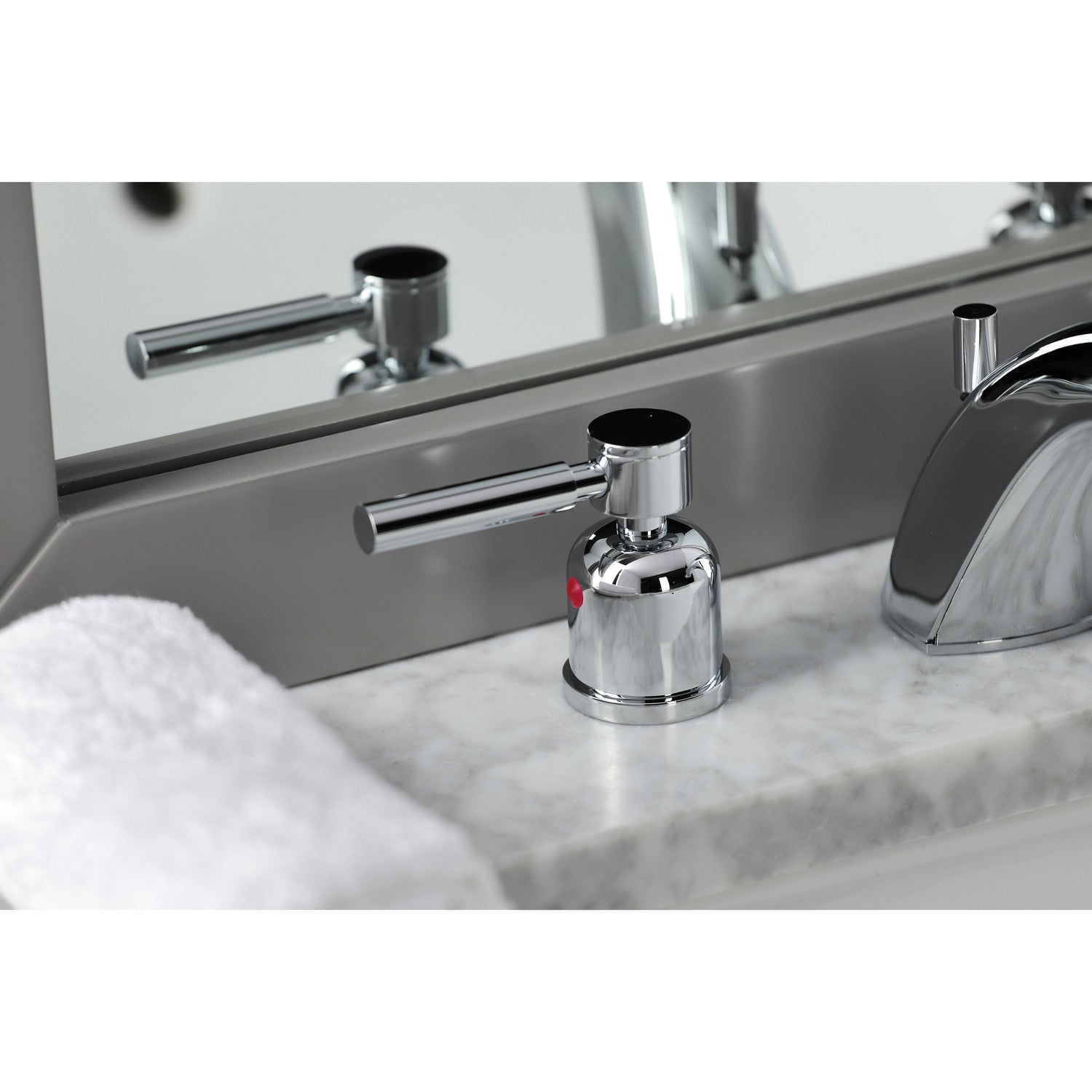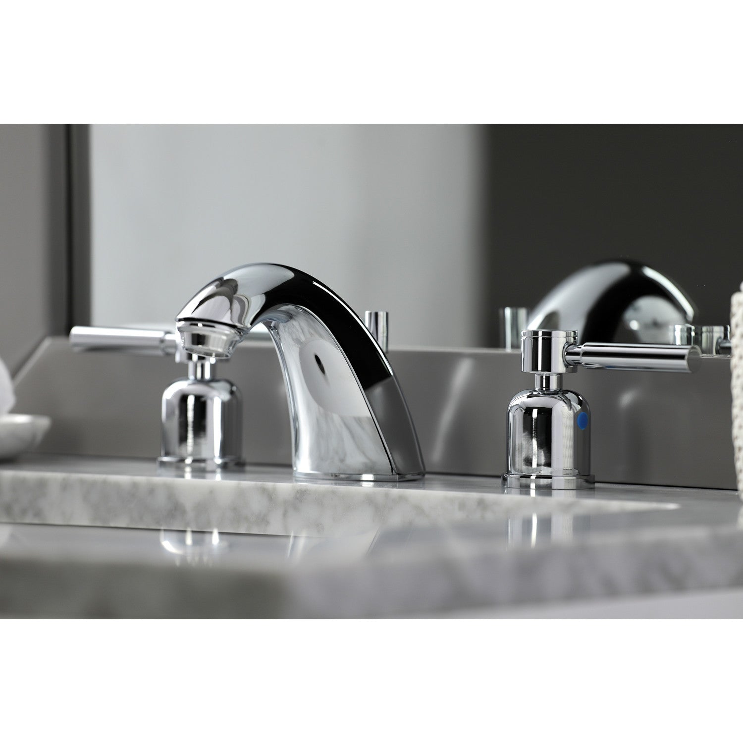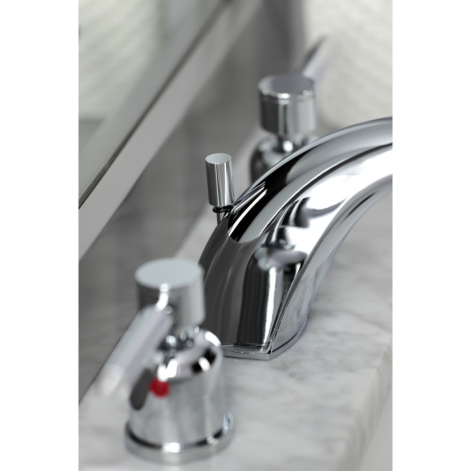 This faucet boasts bold, sleek design with its cylindrical styling. Ideal for more spacious bathrooms, widespread faucets are more spread apart and feature a 3-hole installation. The widespread bathroom faucet and its featured sturdy brass construction and premium polished chrome finish are guaranteed to glamorize your home's modern ensemble for years to come. Flash the radical brilliance of contemporary trends with this statement piece. A matching finish drain is also included.